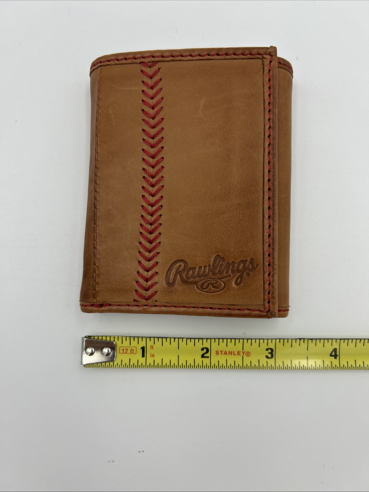 как выглядит Rawlings Baseball Stitch Trifold Wallet Leather Brown W/ Red Stitching фото