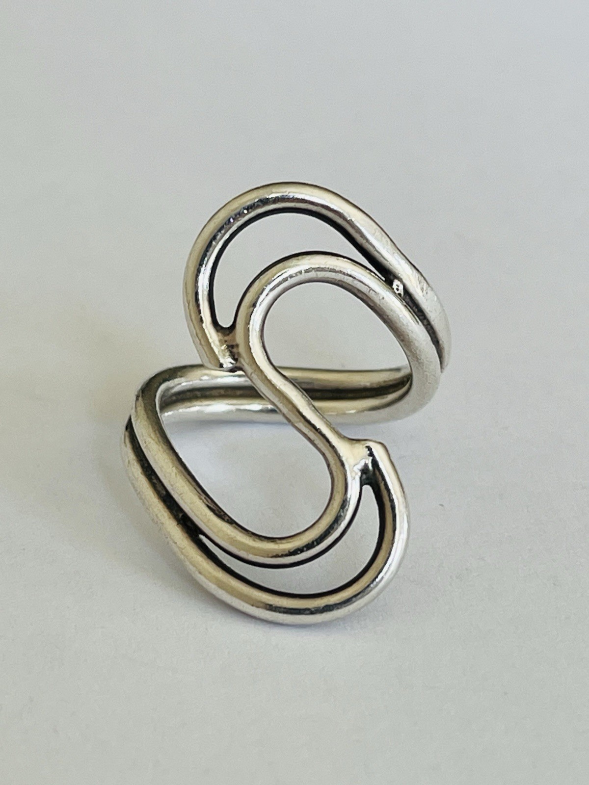 VINTAGE MODERNIST MEXICO 925 STERLING SILVER WAVY RING SIZE 7