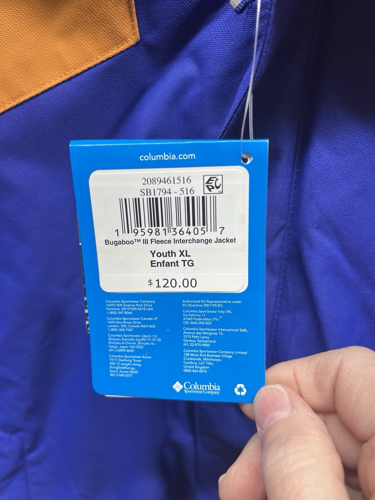Columbia Bugaboo jacket Interchange Youth XL 18-20 blue orange Waterproof New
