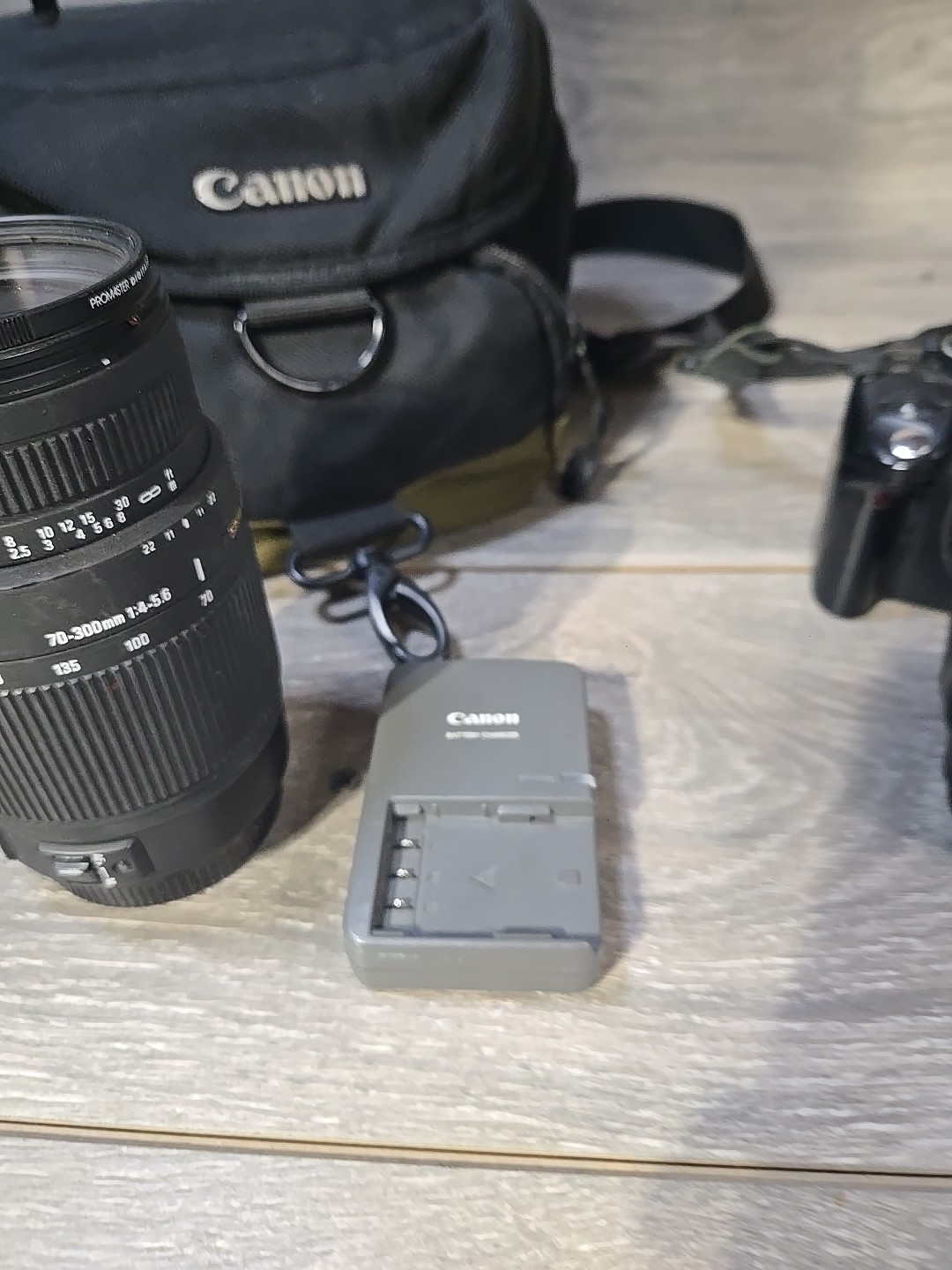 как выглядит Canon Rebel Eos Rebel XT with Ef-s 18-55mm Sigma 70-300mm Lens read Charger фото