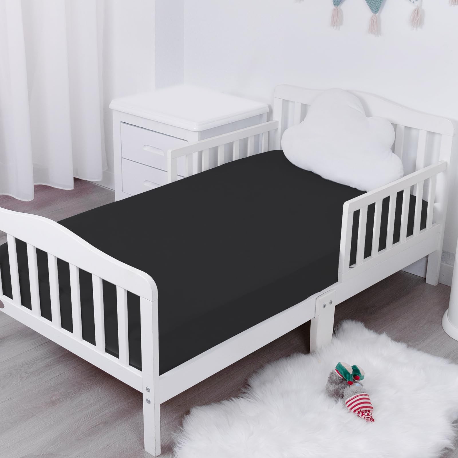 2 Pack Waterproof Crib Sheets Baby Fitted Neutral 52x28 Inch Standard Black