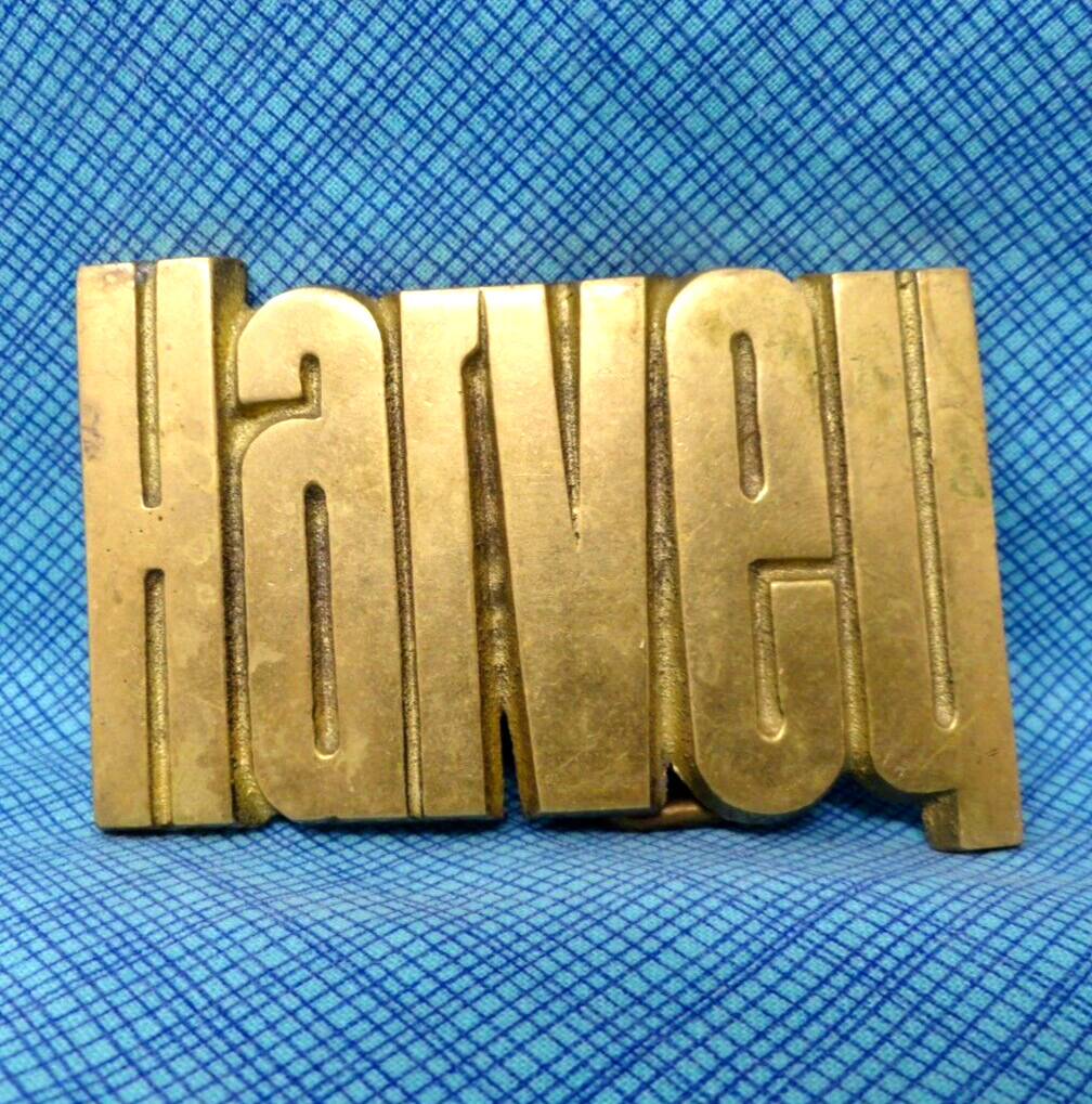 как выглядит HARVEY Belt Buckle Iconic 70s Cut Out Brass Name Vintage Baron Taiwan .MMR561 фото