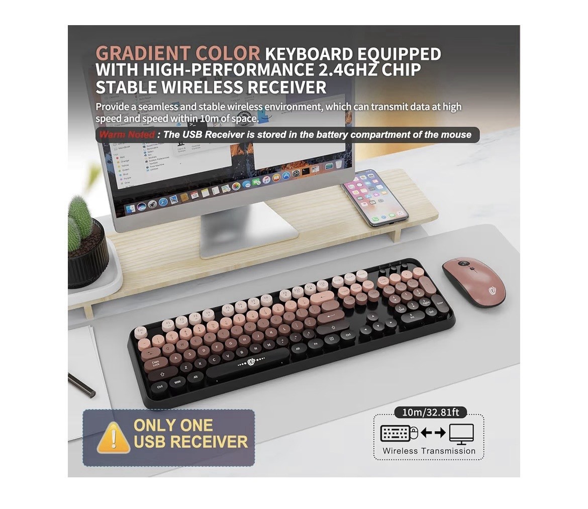 FD Wireless Keyboard And Mouse Combo-2.4G FullSized Cute Colorful Mouse Keyboard