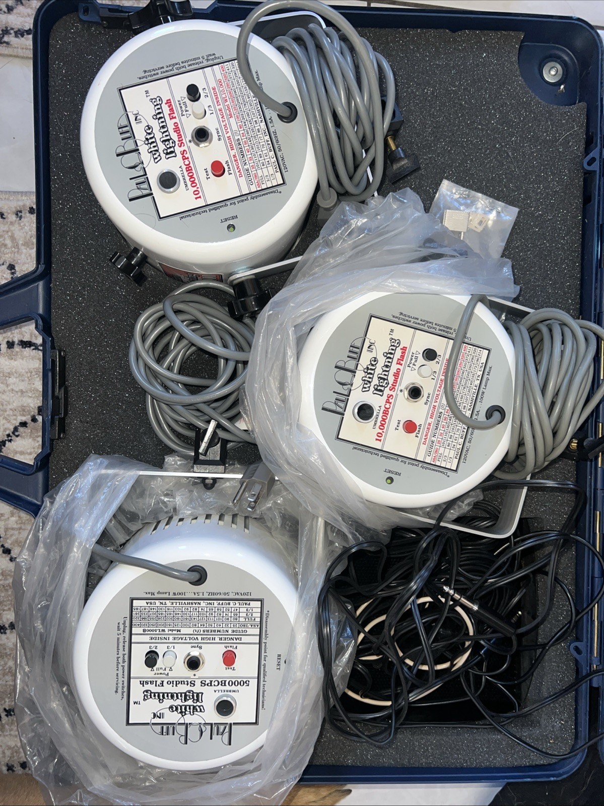 QTY 3 Paul C Buff White Lightning Studio flash Units 10K, 10K 5K CASE CABLES