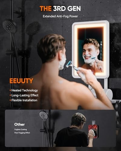 Heated Shower Mirror Fogless for Shaving Gen 3 - 3 Colors Stepless White