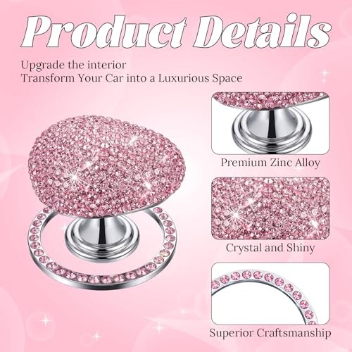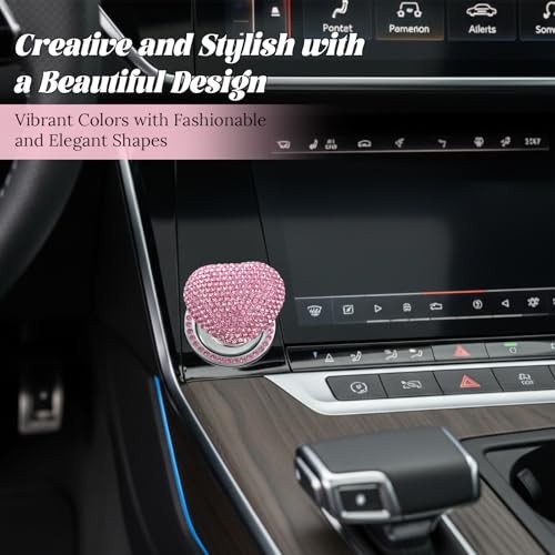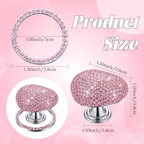 2 Pcs Bling Push to Start Button Cover Rhinestone Car Engine Start Ring, Pink