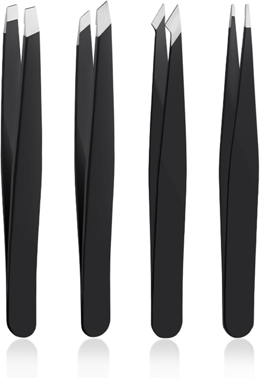 4 PCS Stainless Steel Tweezers Set Precision Tweezers for Ingrown Hair, Fac...