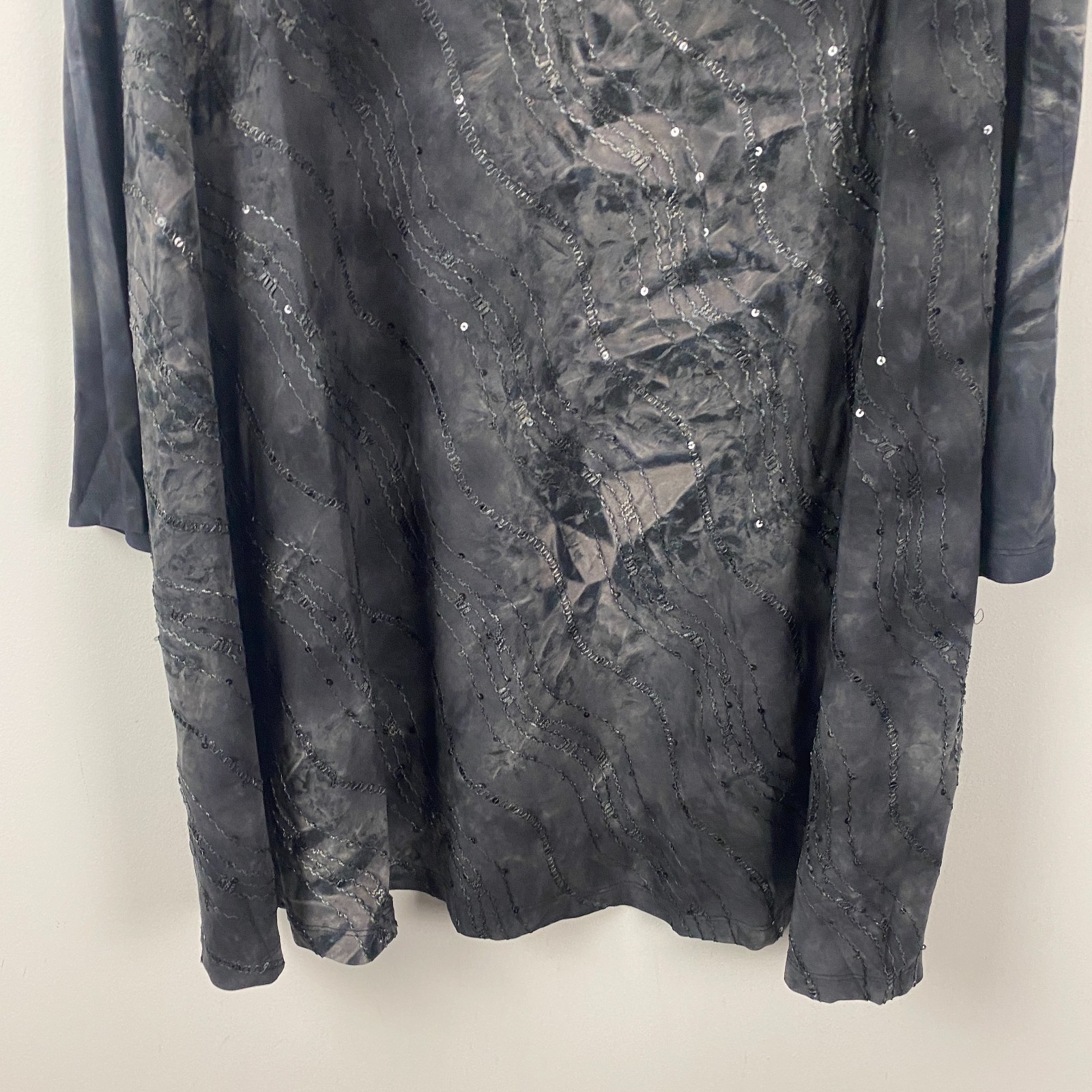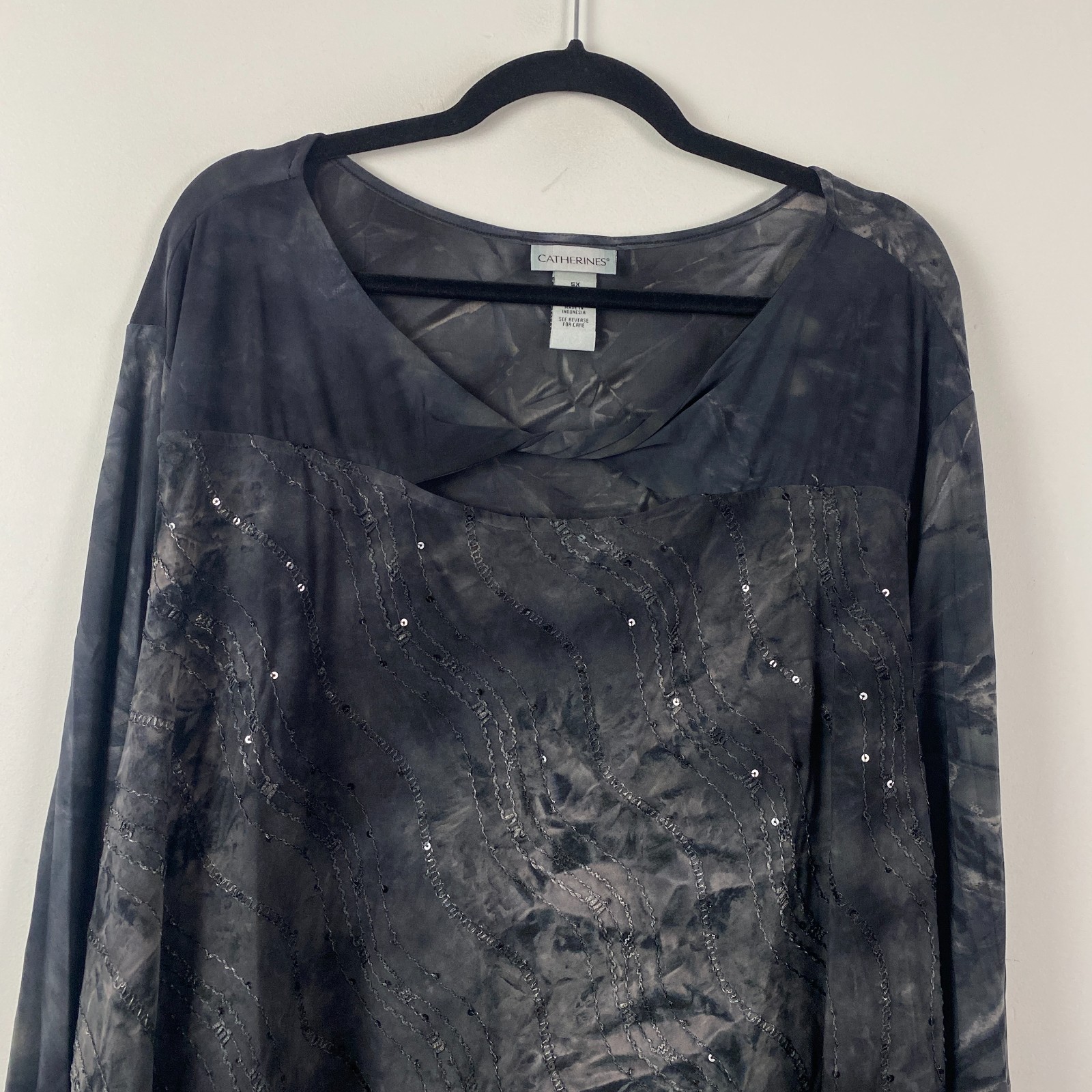 Catherines Starlight Top Size 5X Gray Twist Keyhole Neck 3/4 Sleeves Sequin
