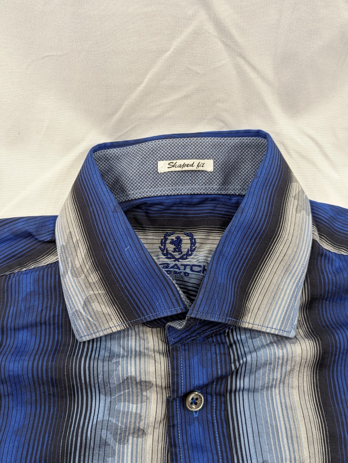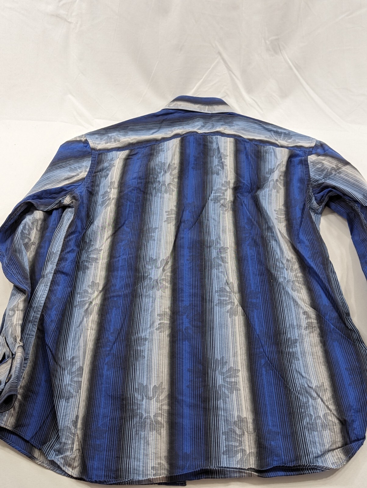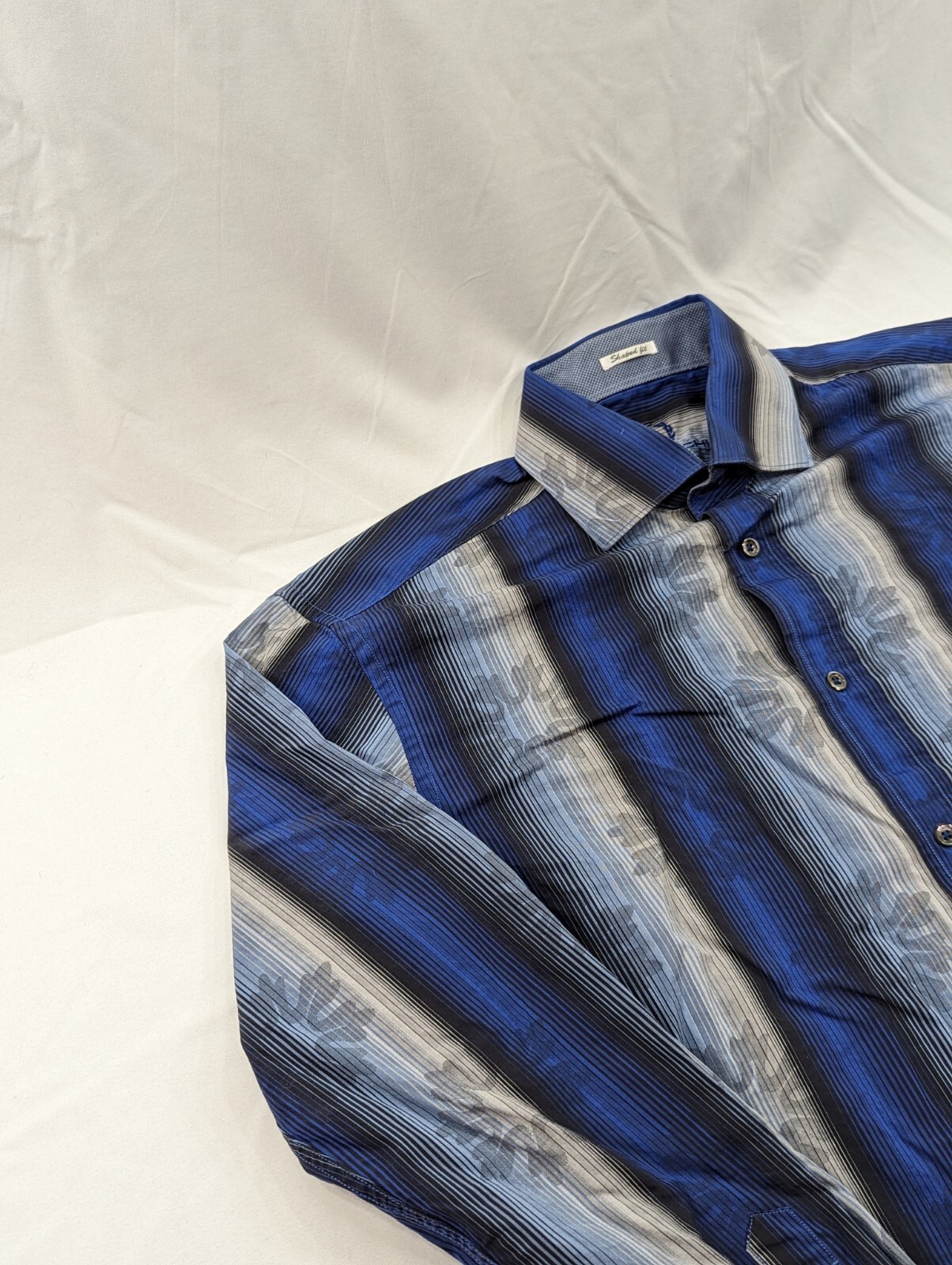 Bugatchi Uomo Button Up Shirt Mens Medium Blue Shaped Fit Flip Cuff Floral
