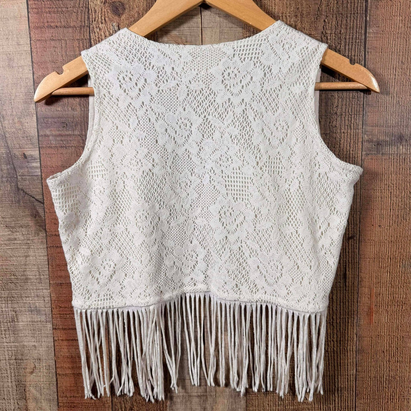 Shyanne Girls XL Ivory Crochet Fringe Vest Western Boho Rodeo Top Cowgirl