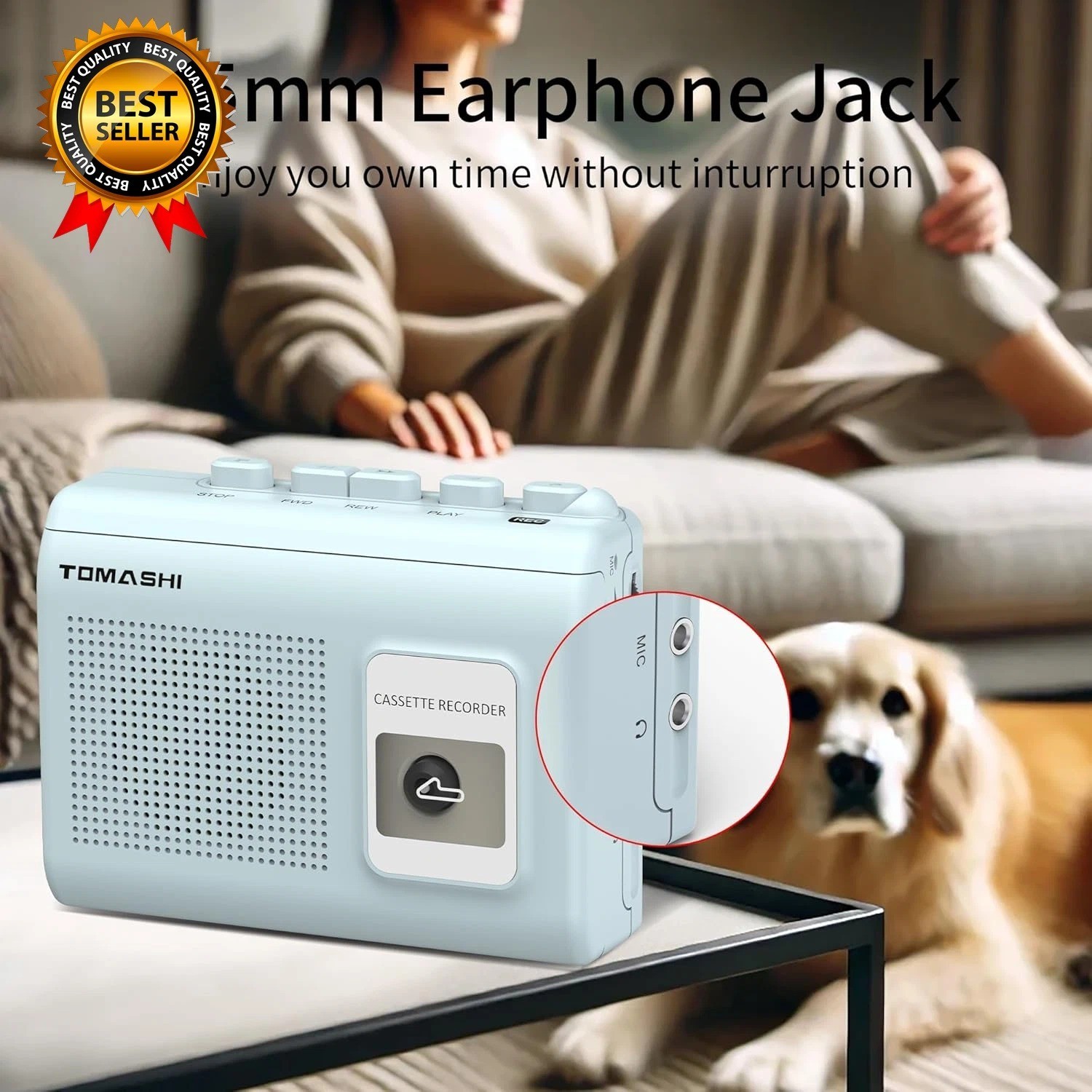 Portable Cassette Player Tape Recorder Walkman with Built-In Speaker Microphone