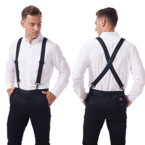 Hook on Suspenders for Men Black Heavy Duty X Back 1.5 Inch Wide Elastic Straps