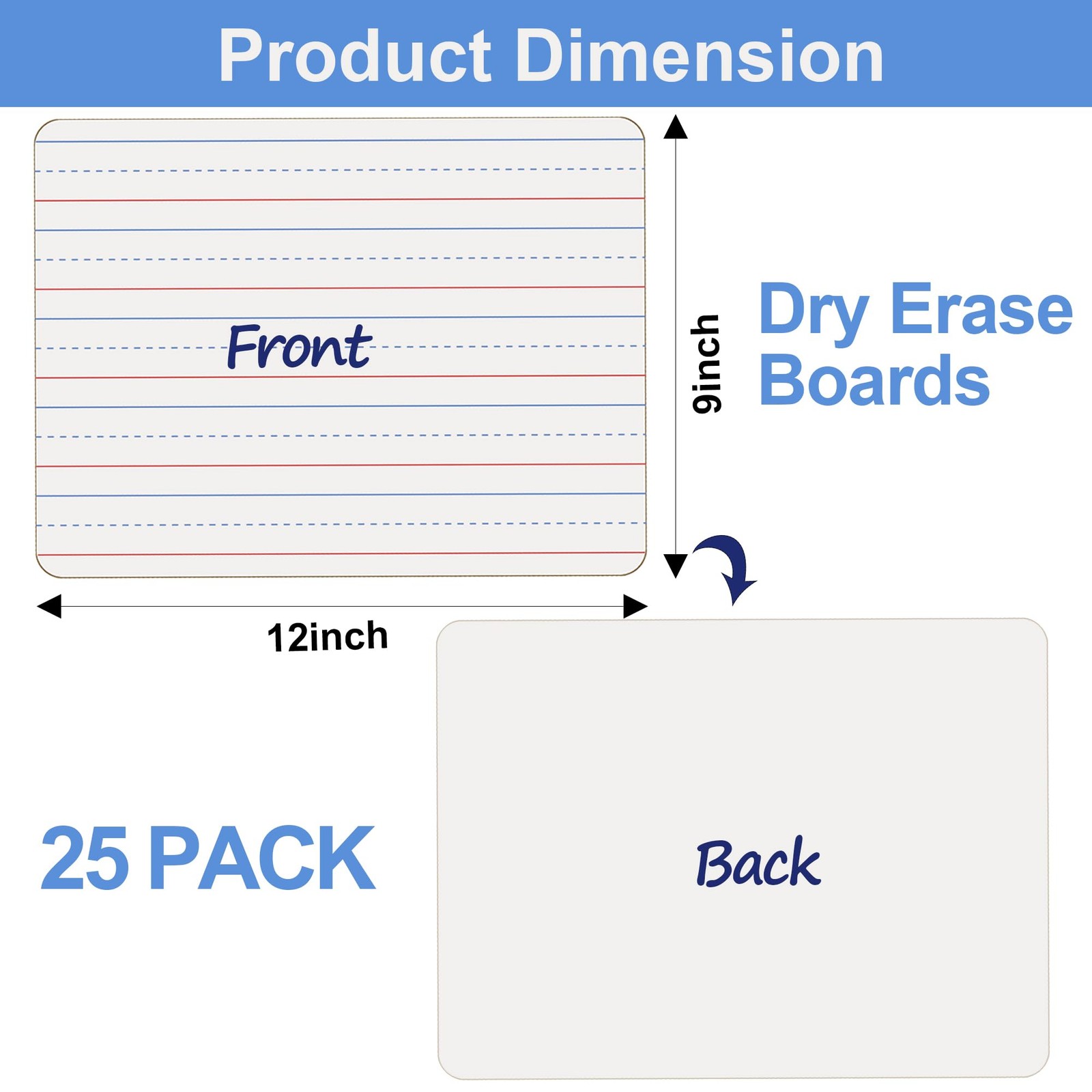 Dry Erase Boards 25 Pack, Double Sided Small Whiteboards with Lines for Kids,...