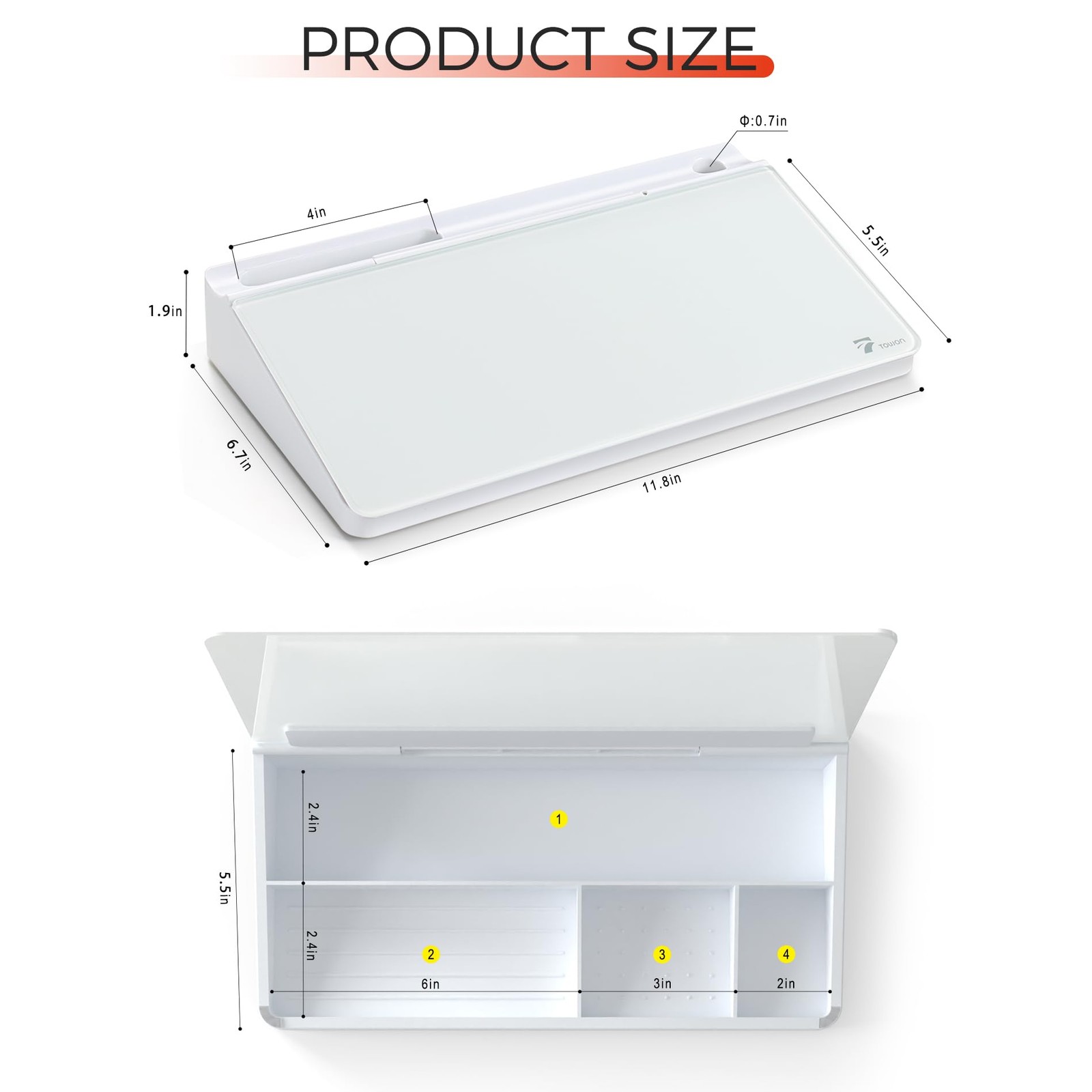 Small Compact Glass Desktop Whiteboard with Storage 12 x 7 in Dry Erase Boa...