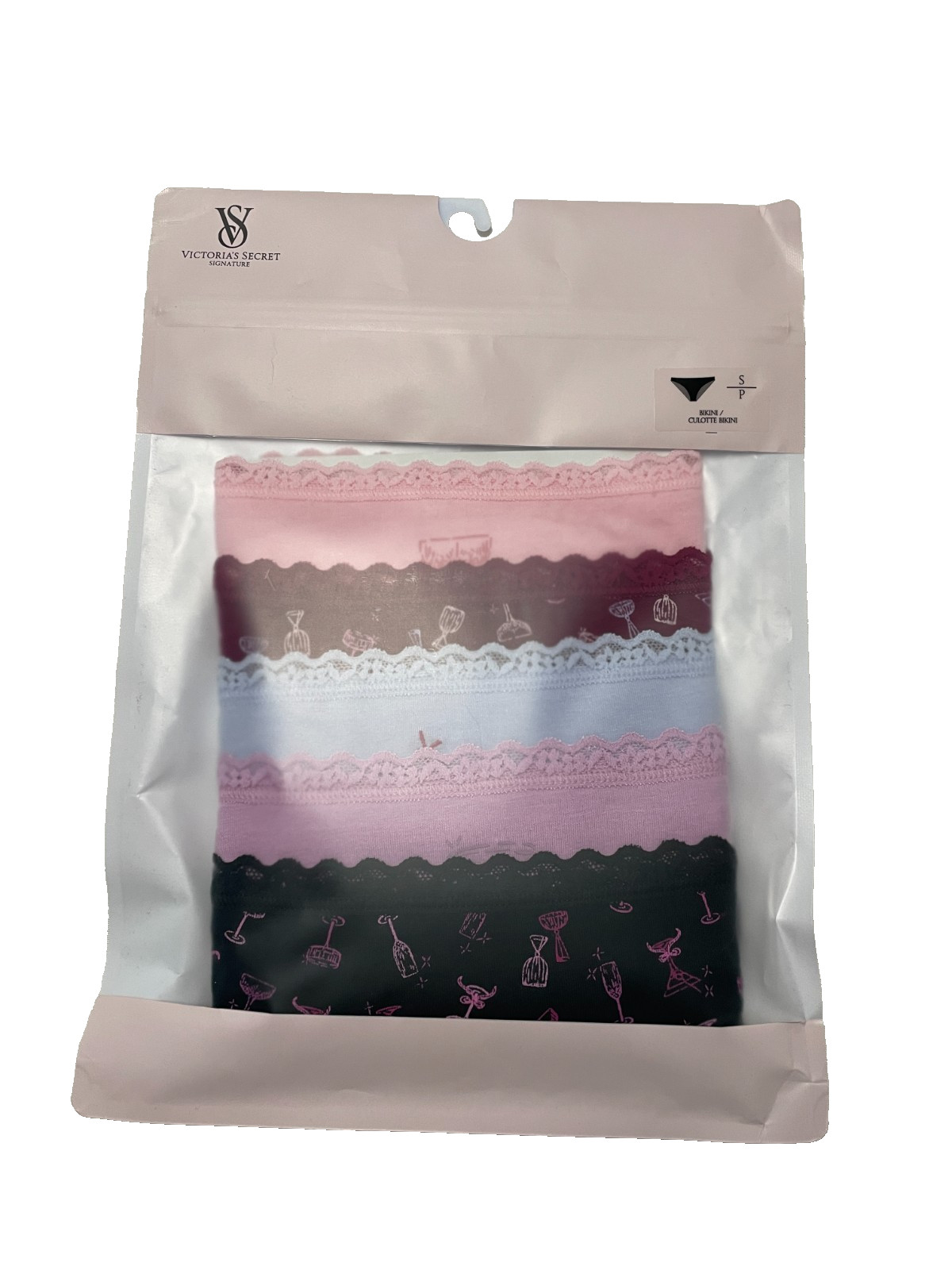 Victoria Secret Bikini Panties 5 Pairs Womens Small Lace Trim Drinks Themed