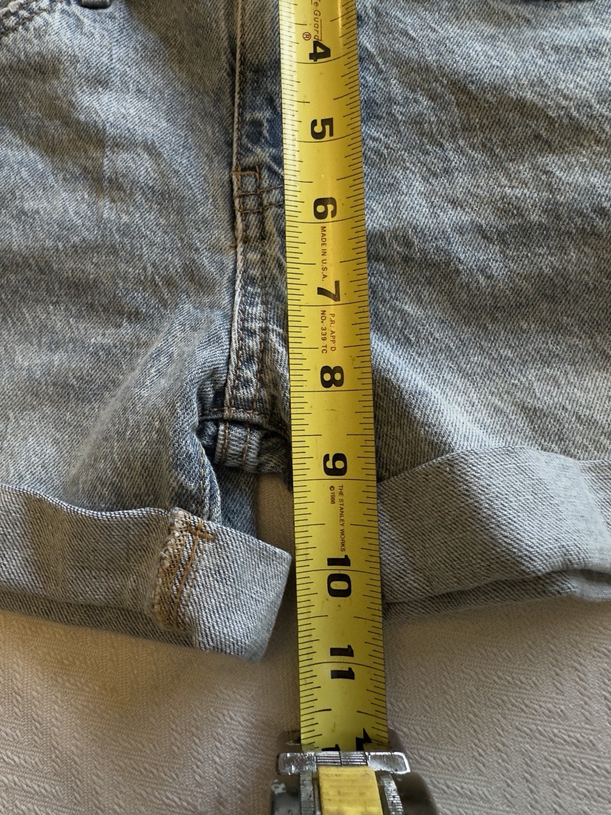 как выглядит NEW Art Class Girl s High Rise Relaxed Fit Blue Denim Jean Cuffed Shorts sz S6/7 фото
