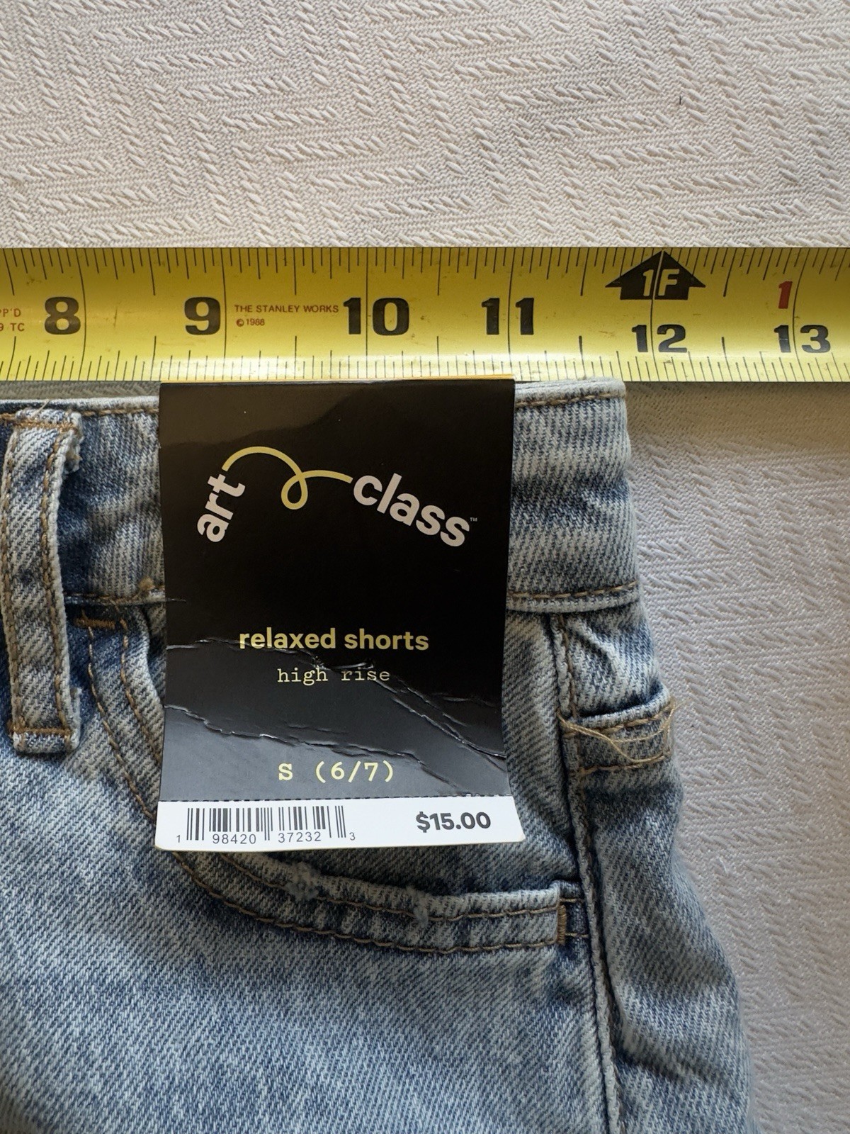 NEW Art Class Girl s High Rise Relaxed Fit Blue Denim Jean Cuffed Shorts sz S6/7