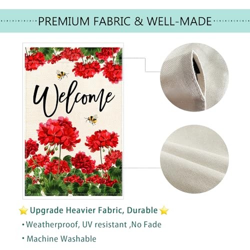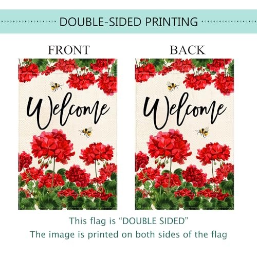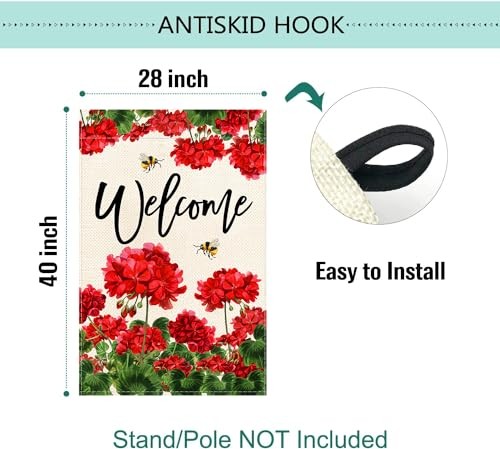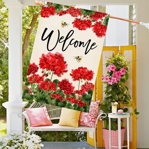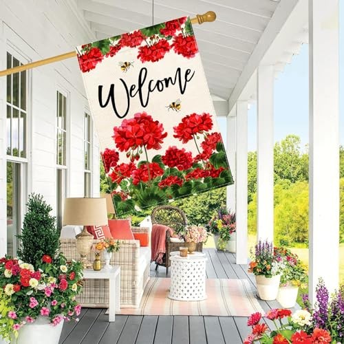 Welcome House Flag Double House Size 28 x 40 Inch Spring Summer Geranium