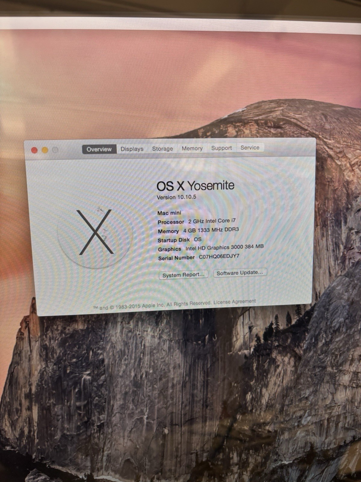 Apple Mac Mini Server 2011 Core i7 2GHz 4GB RAM 2x 500G HDD OS X Yosemite