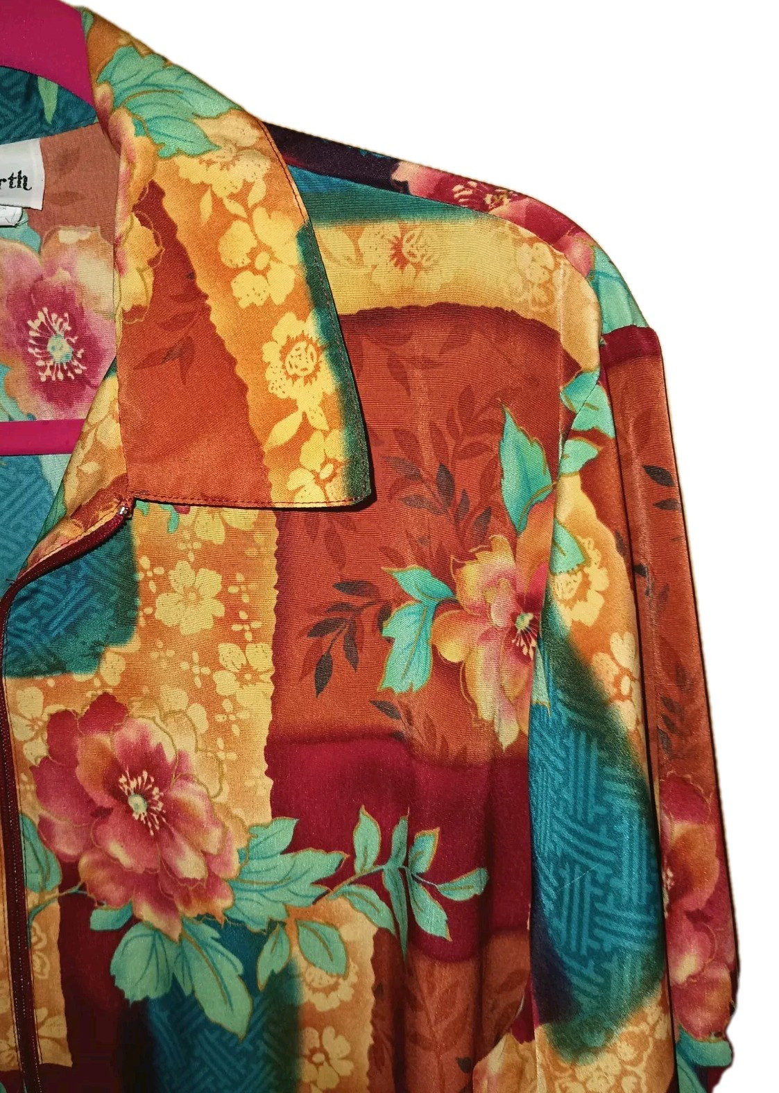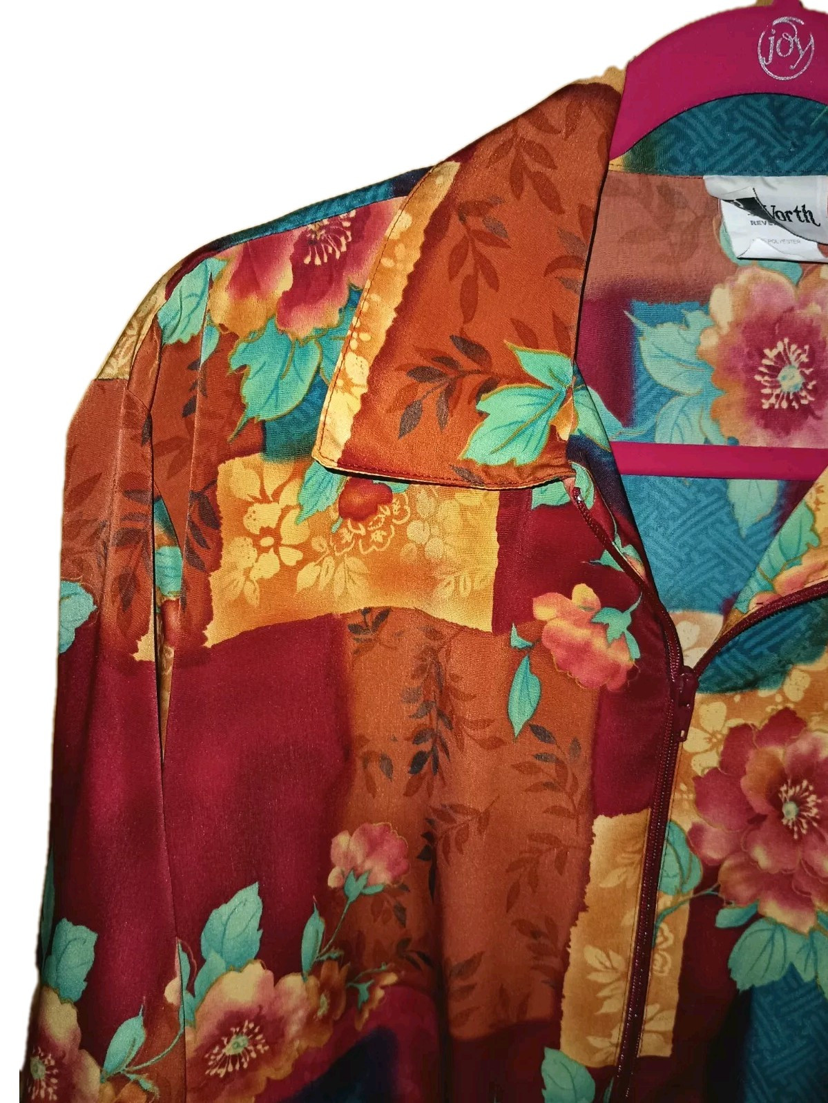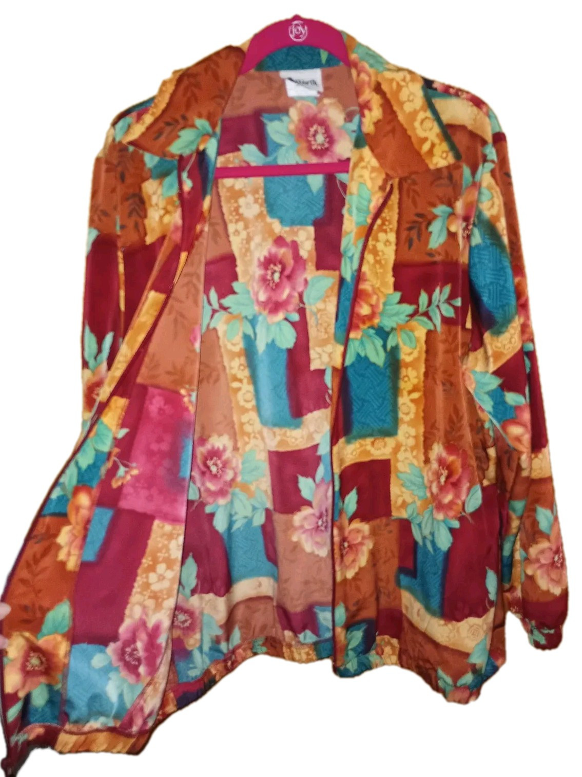 как выглядит Vintage BonWorth Women M Y2K Floral Windbreaker Full Zip Bomber Jacket Colorful фото