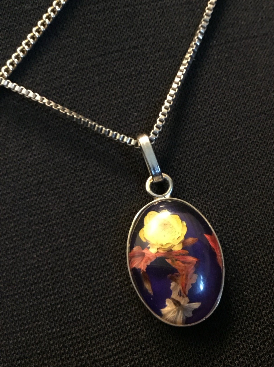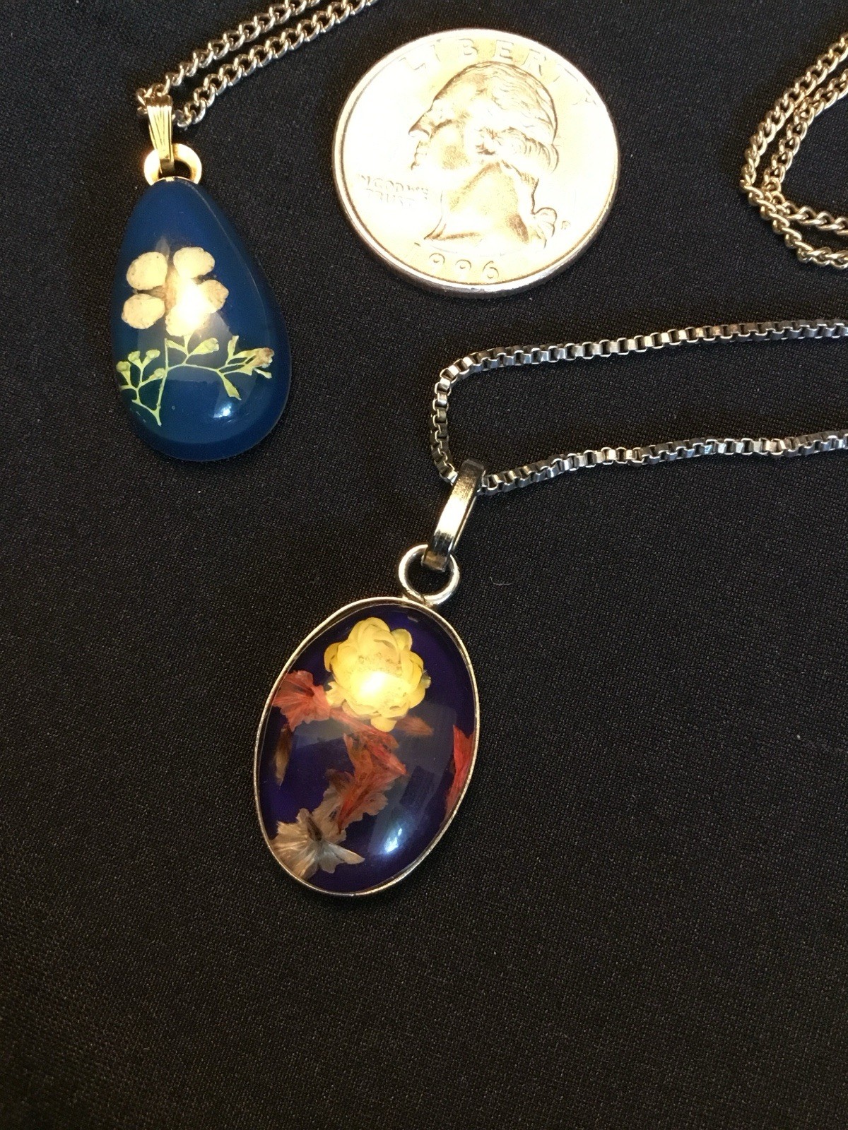 Set Of 2 Beautiful Vintage Resin Dried Flower Necklaces