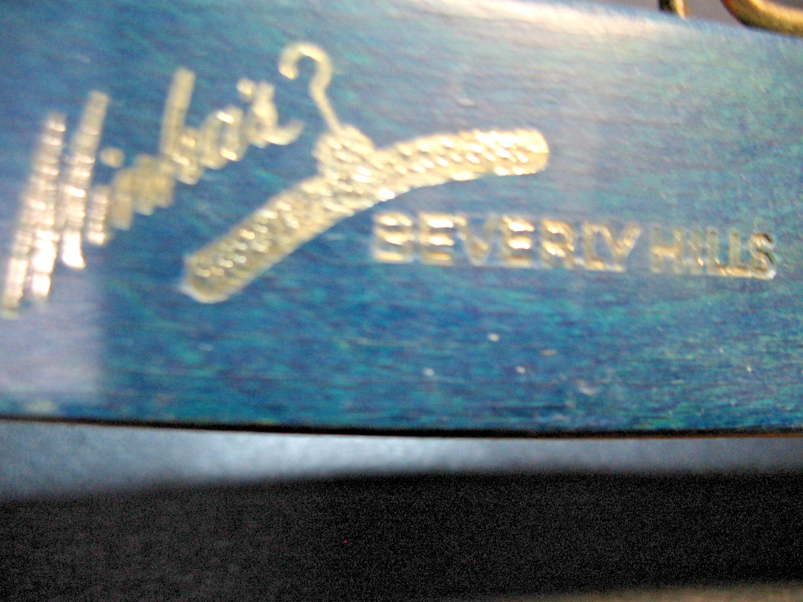 как выглядит VINTAGE MINKAS BEVERLY HILLS PANTS SLACKS WOODEN HANGER 10 GILDED LOGO фото