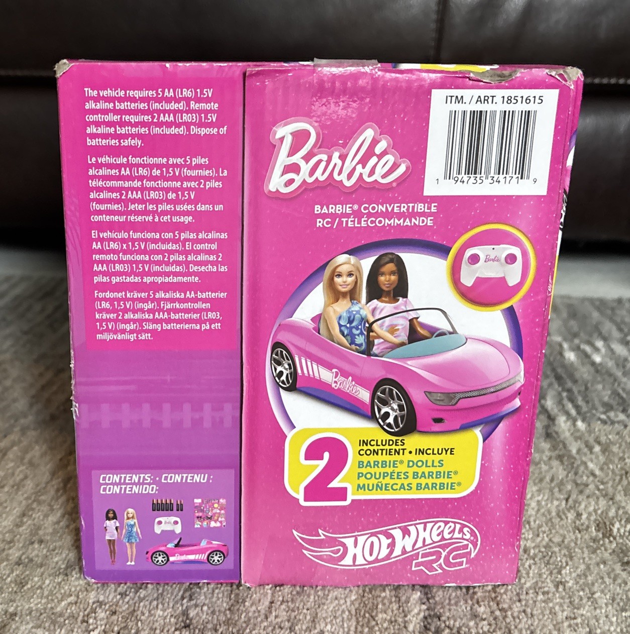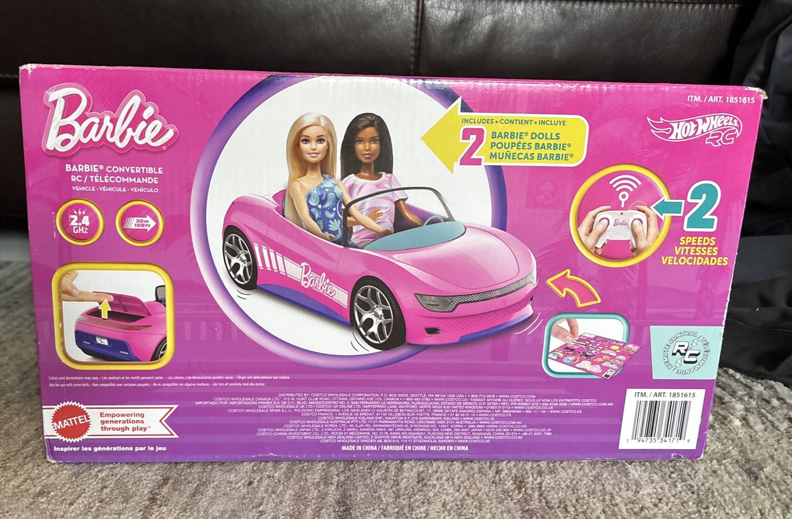 Hot Wheels Barbie Remote Control Convertible Car with 2 Dolls 1851615