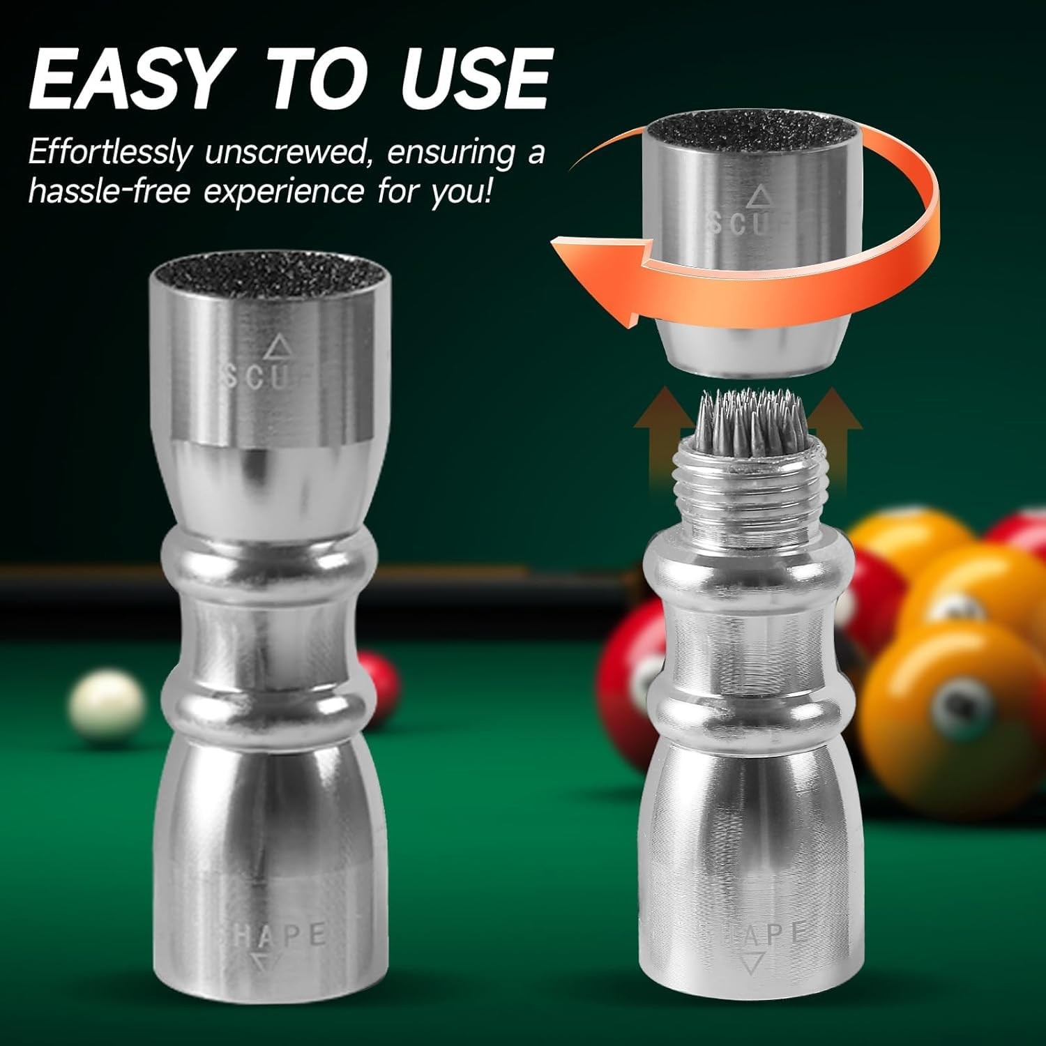 Vastarsky 3-in-1 Cue Tip Tool, Professional Pool Shaper, Silver