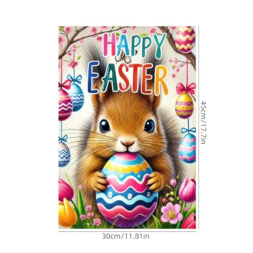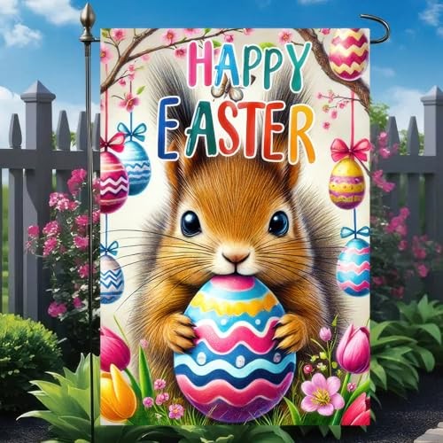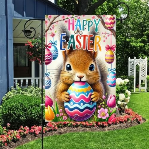 Happy Easter Garden Flag 12x18 Double Sided Outside Outdoor Decor Squirrel
