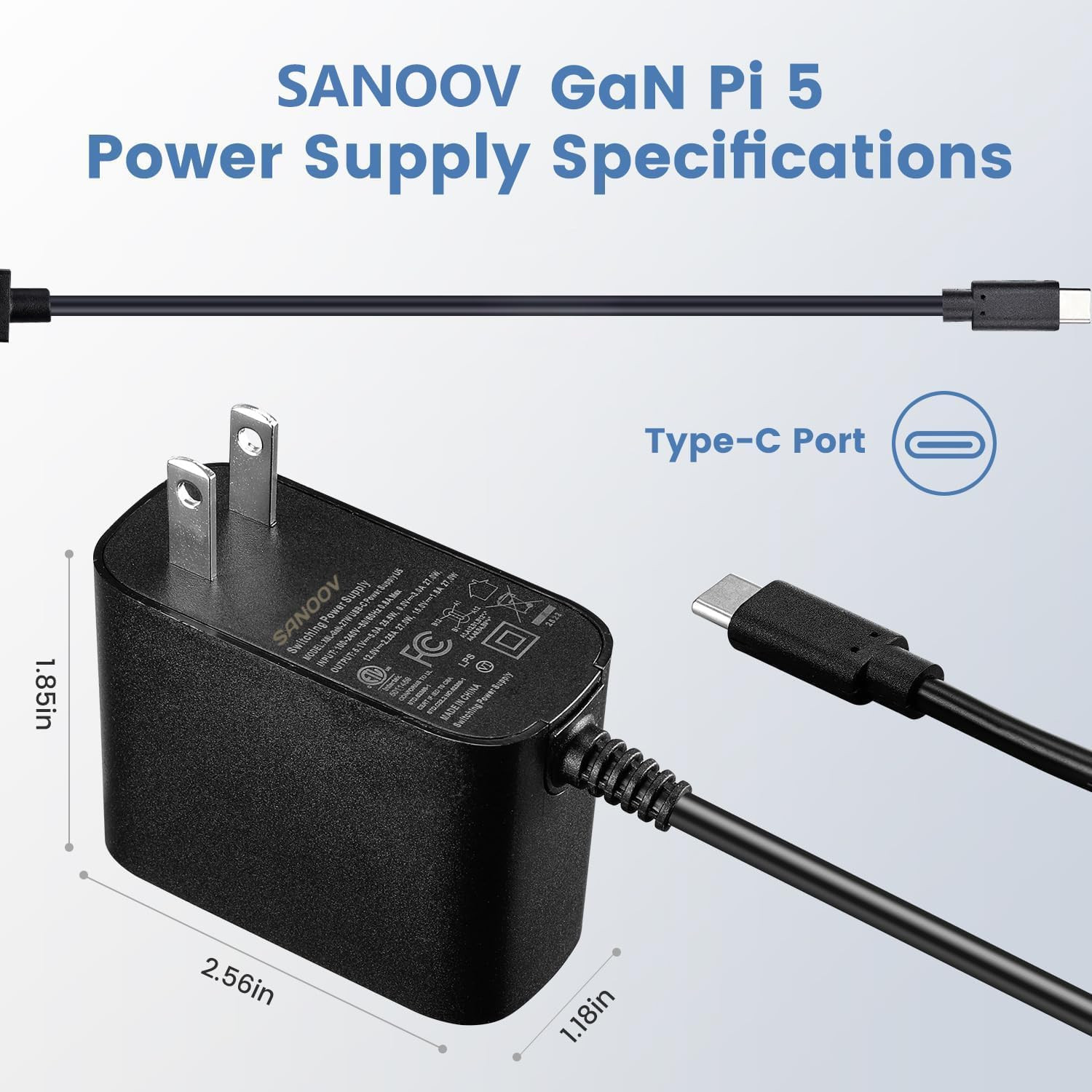27W Gan PD USB-C Power Supply for Raspberry Pi 5 5.1V 5A PD USB-C Pi 5 Power Ada