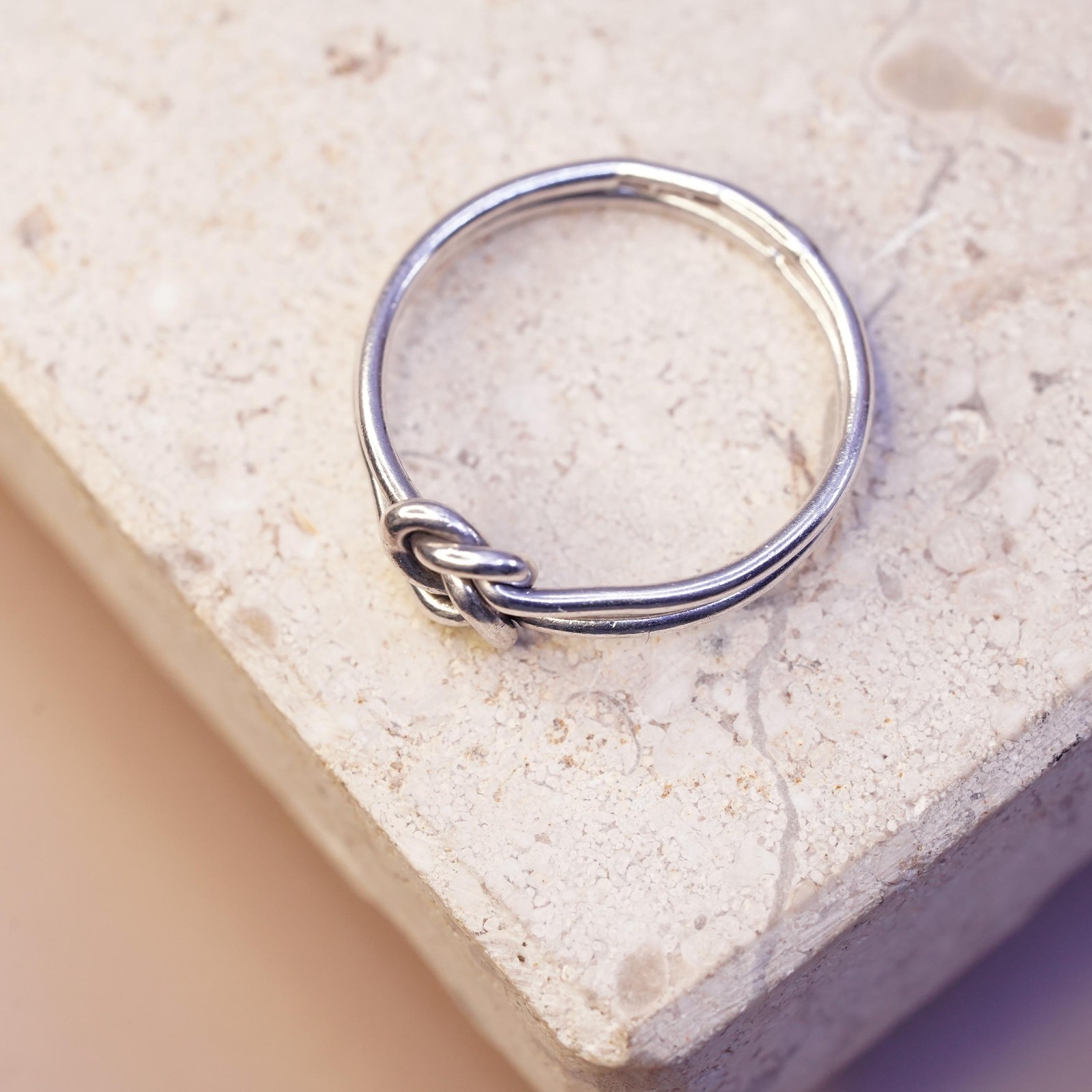 как выглядит Size 5.75, vintage sterling silver ring, solid 925 silver wired knotted band фото
