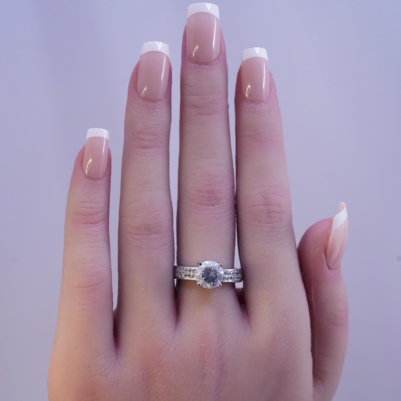 как выглядит Size 7.25, vintage Sterling 925 silver engagement anniversary ring cluster Cz фото