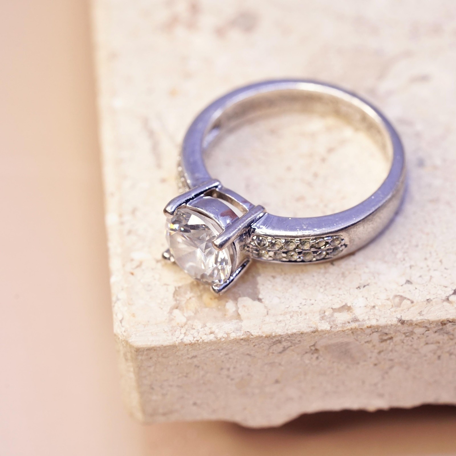 Size 7.25, vintage Sterling 925 silver engagement anniversary ring cluster Cz