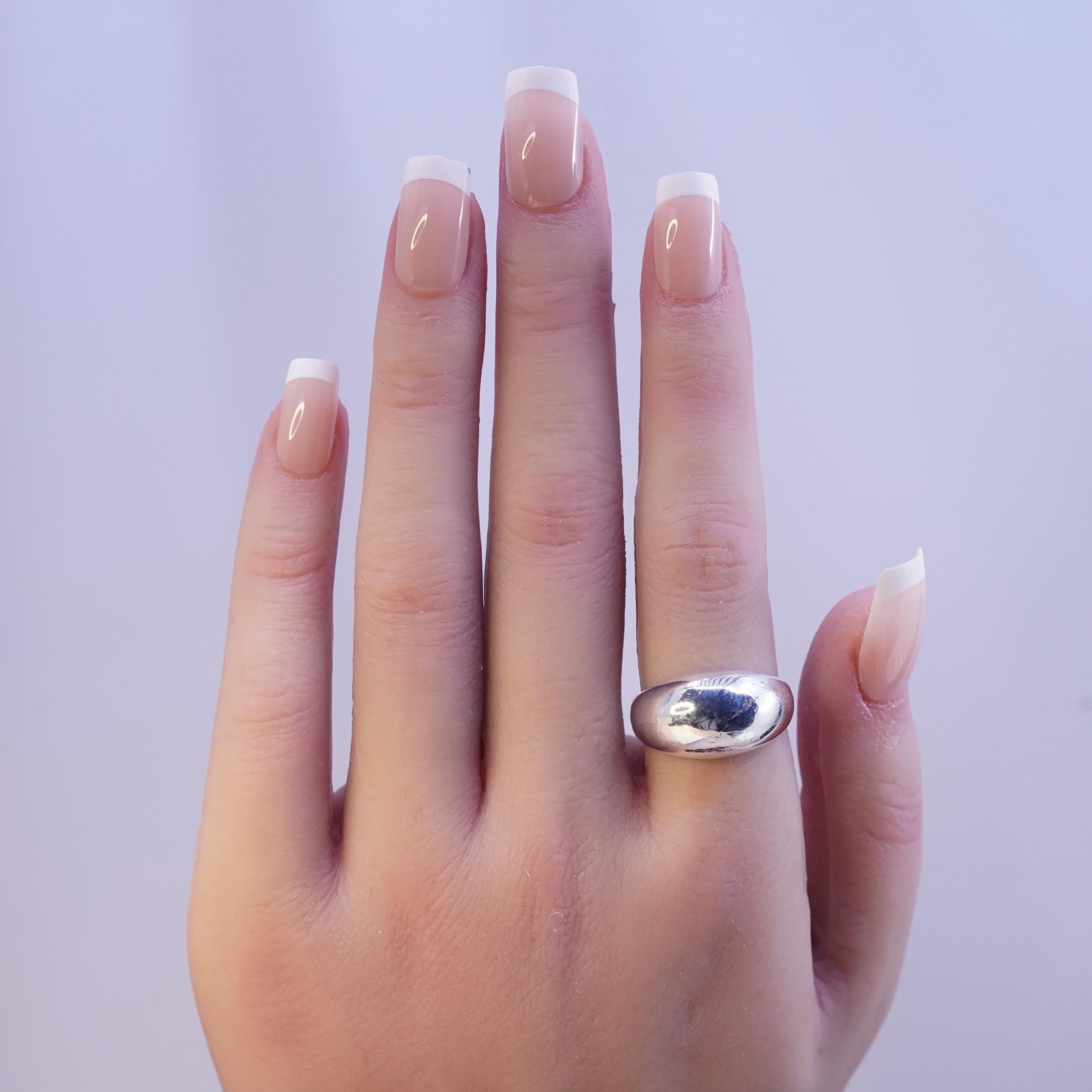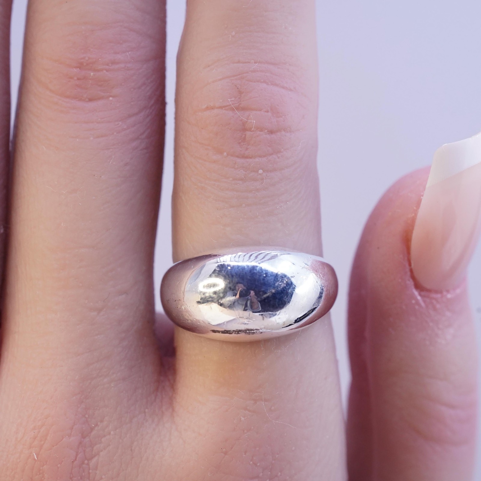 как выглядит Size 7, vintage Sterling silver handmade dome ring, 925 wide band фото