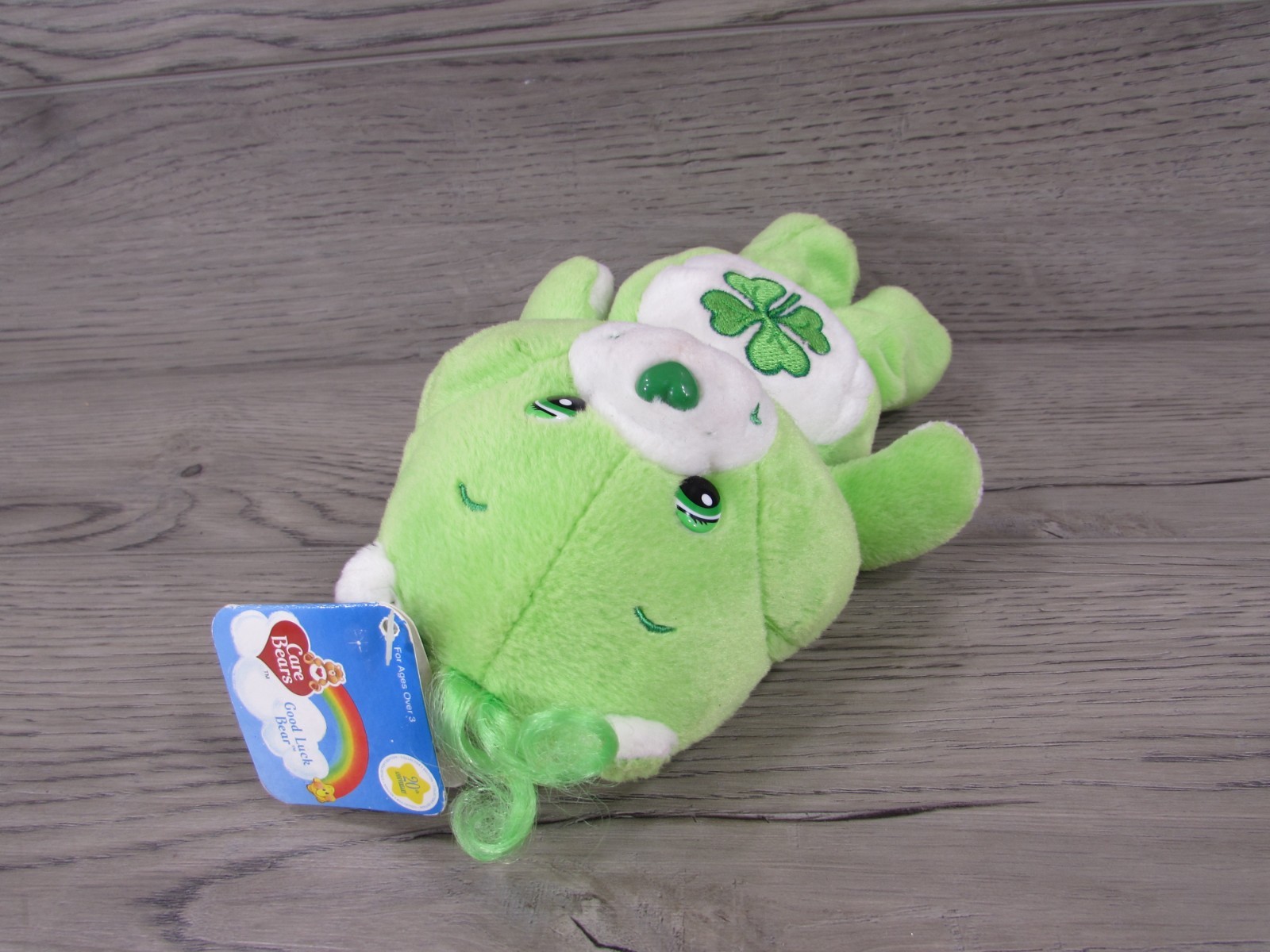 • 2002 Care Bears Good Luck Bear 8 Plush Green Shamrock 4 Leaf Clover With Tags