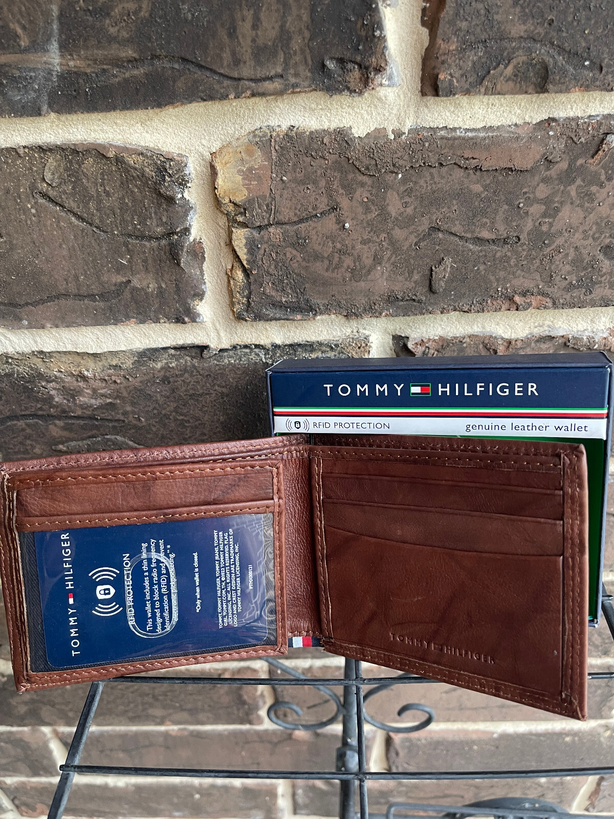 как выглядит NWT Tommy Hilfiger Mens RFID Leather Traveler Wallet Tan 31TL240006 фото