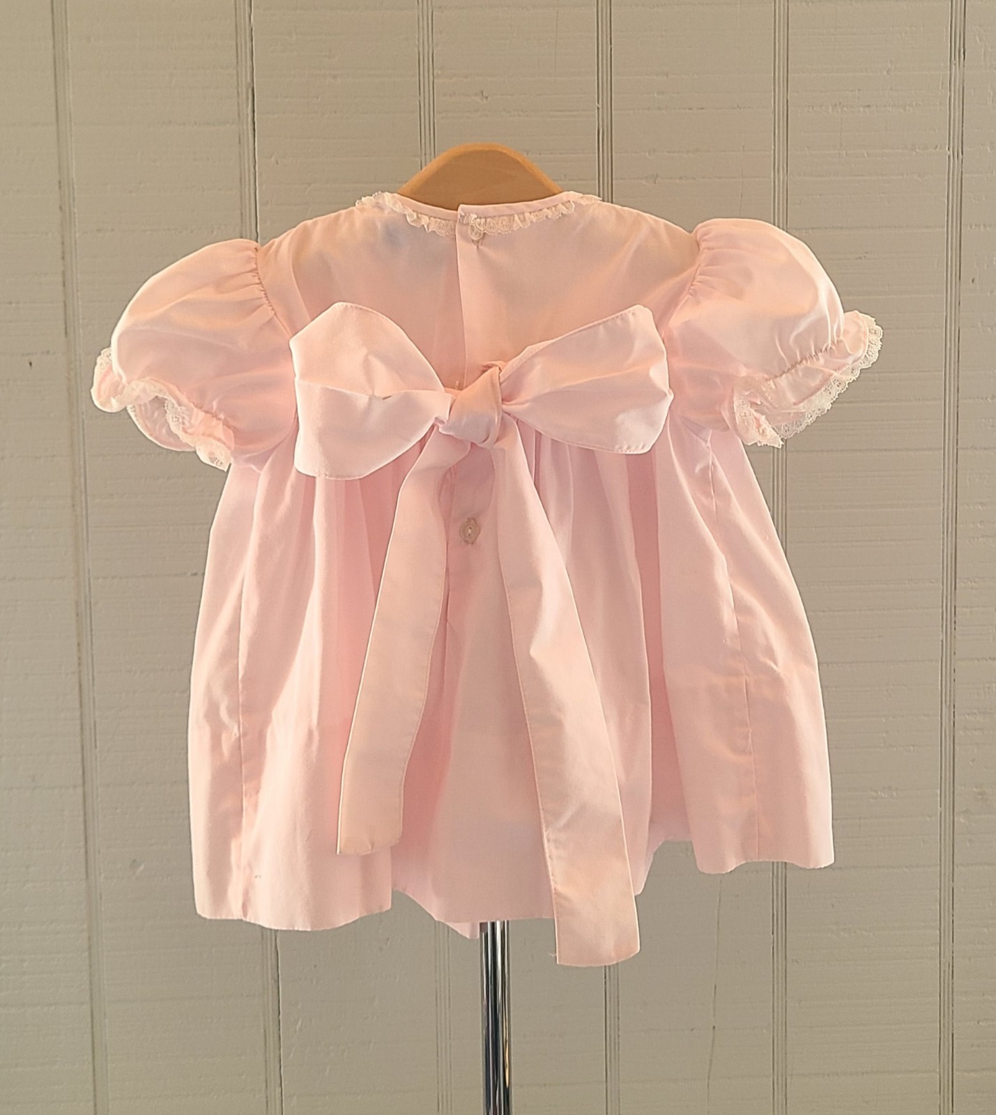 Vintage Petit Ami Pink Hand Smocked Embroidered Dress Easter Summer READ 3-6 M
