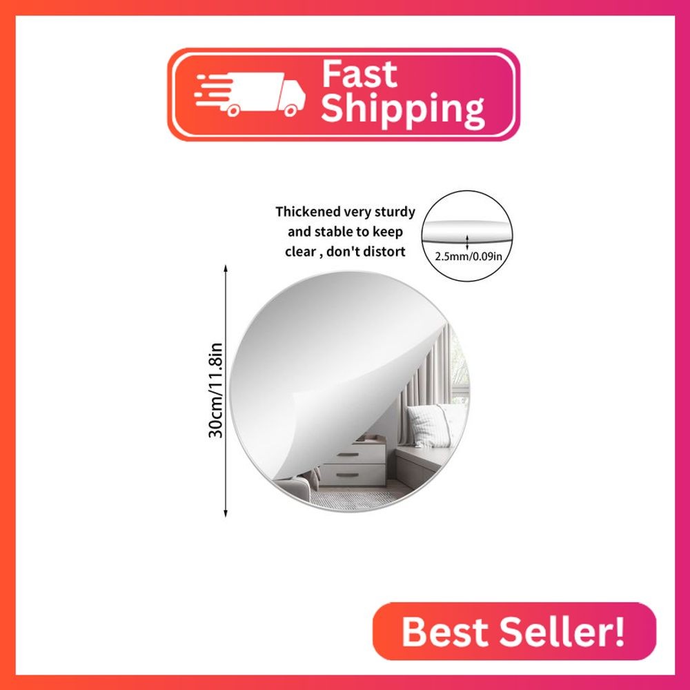 DARENYI 12'' Round Wall Mirror Tiles High Clear Reflecticon Self Adhesive Acryli