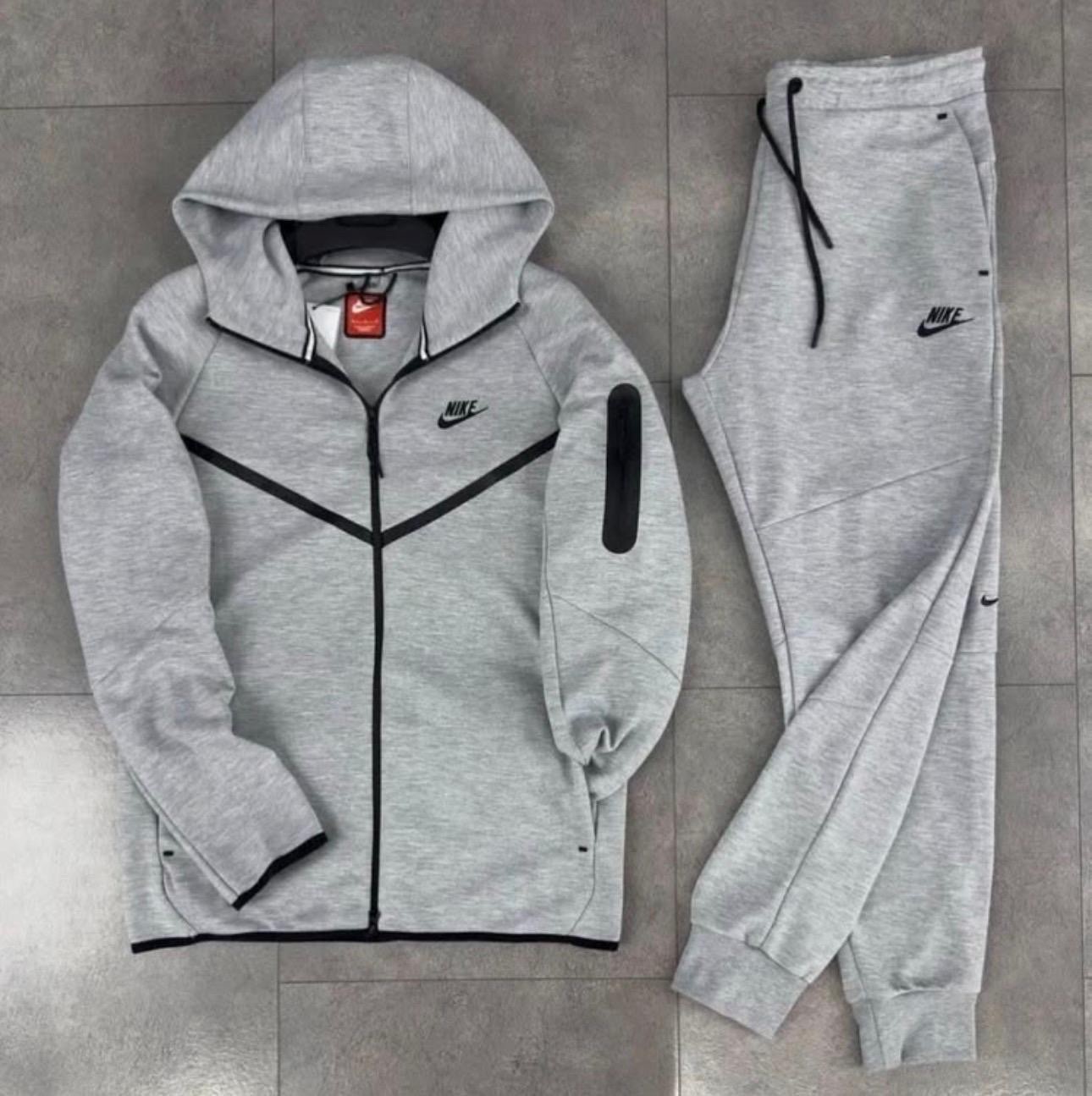 как выглядит Nike Tech Gray Black Men s Set Hoodie Pants Logo Zipper фото