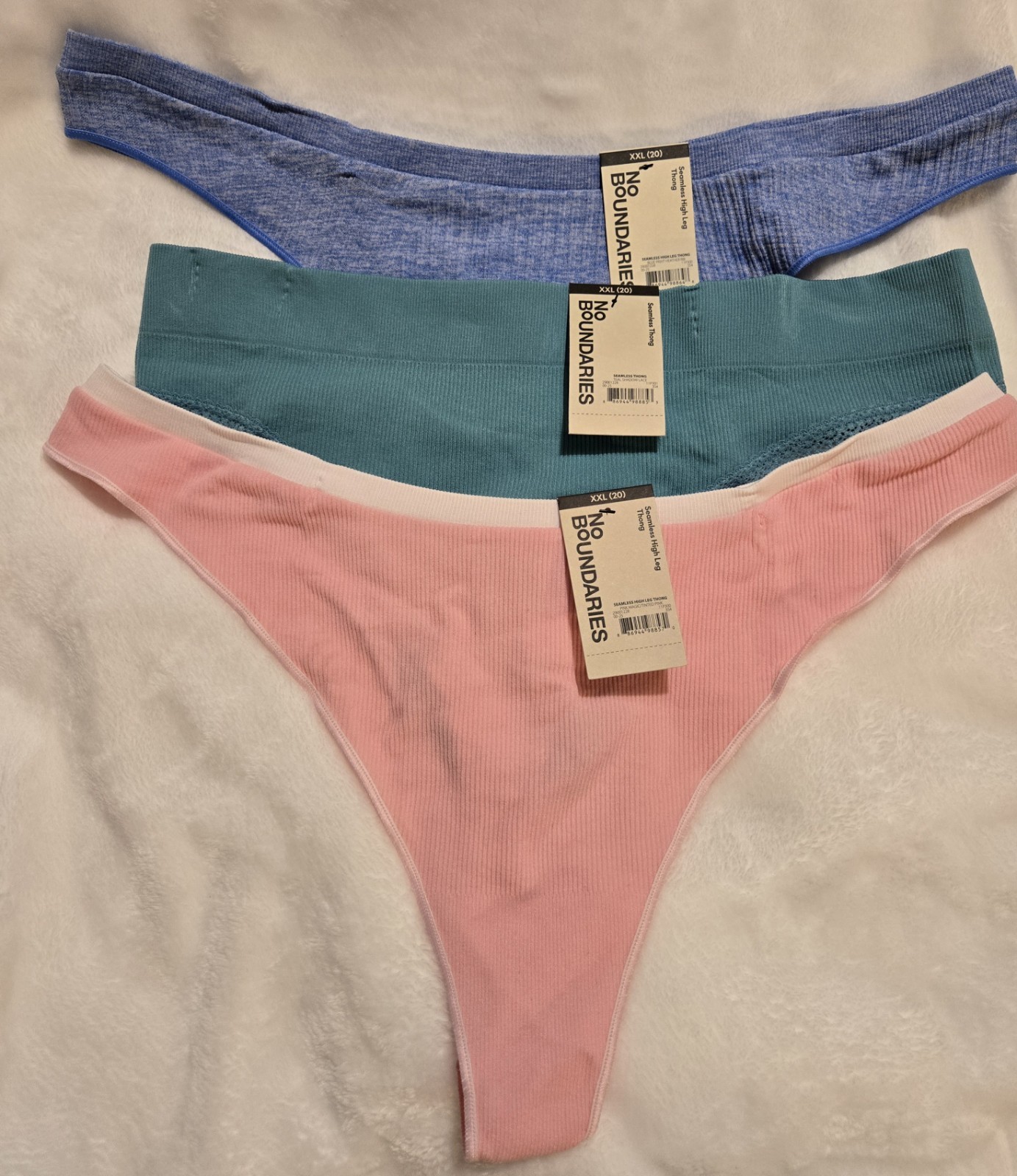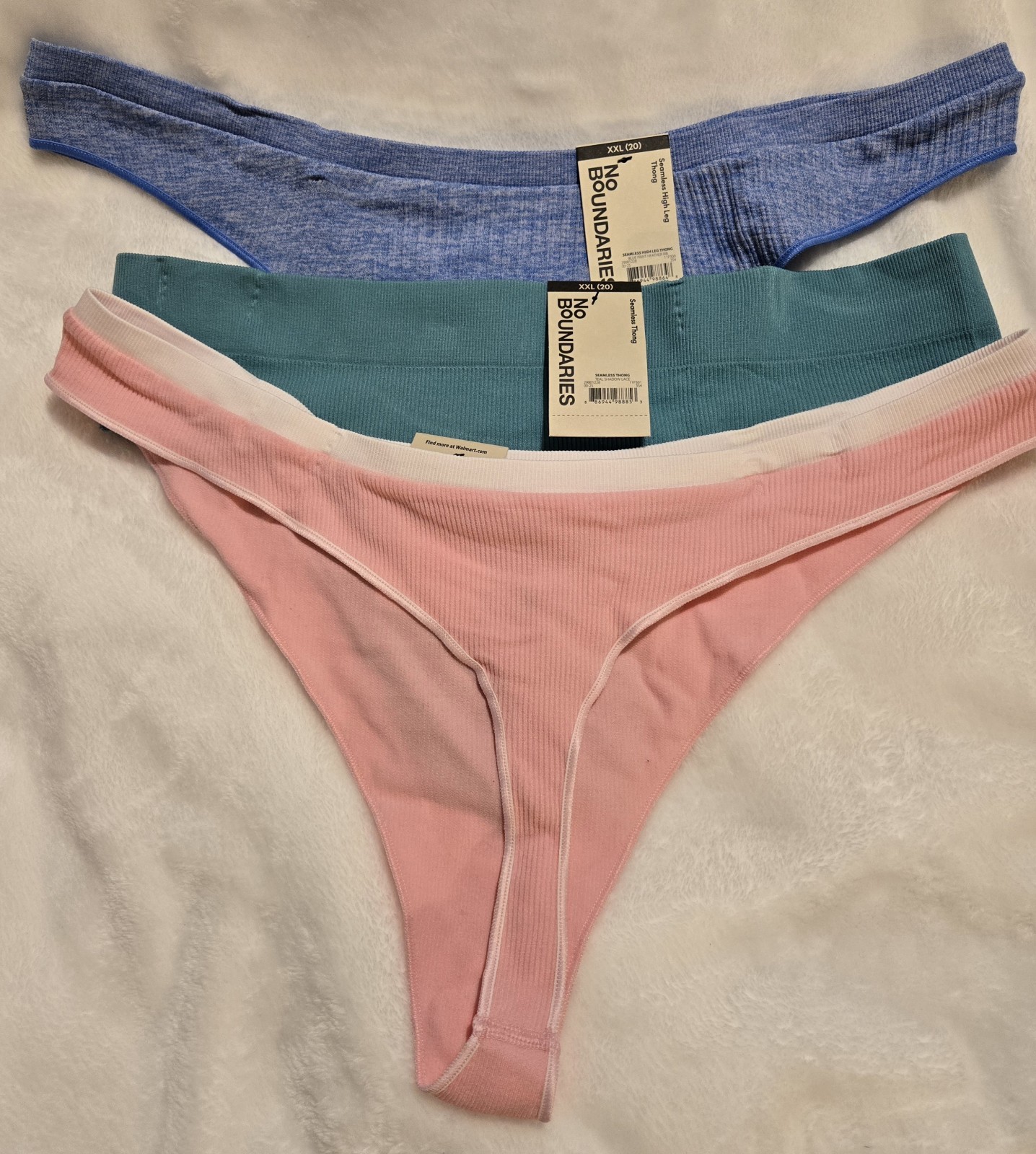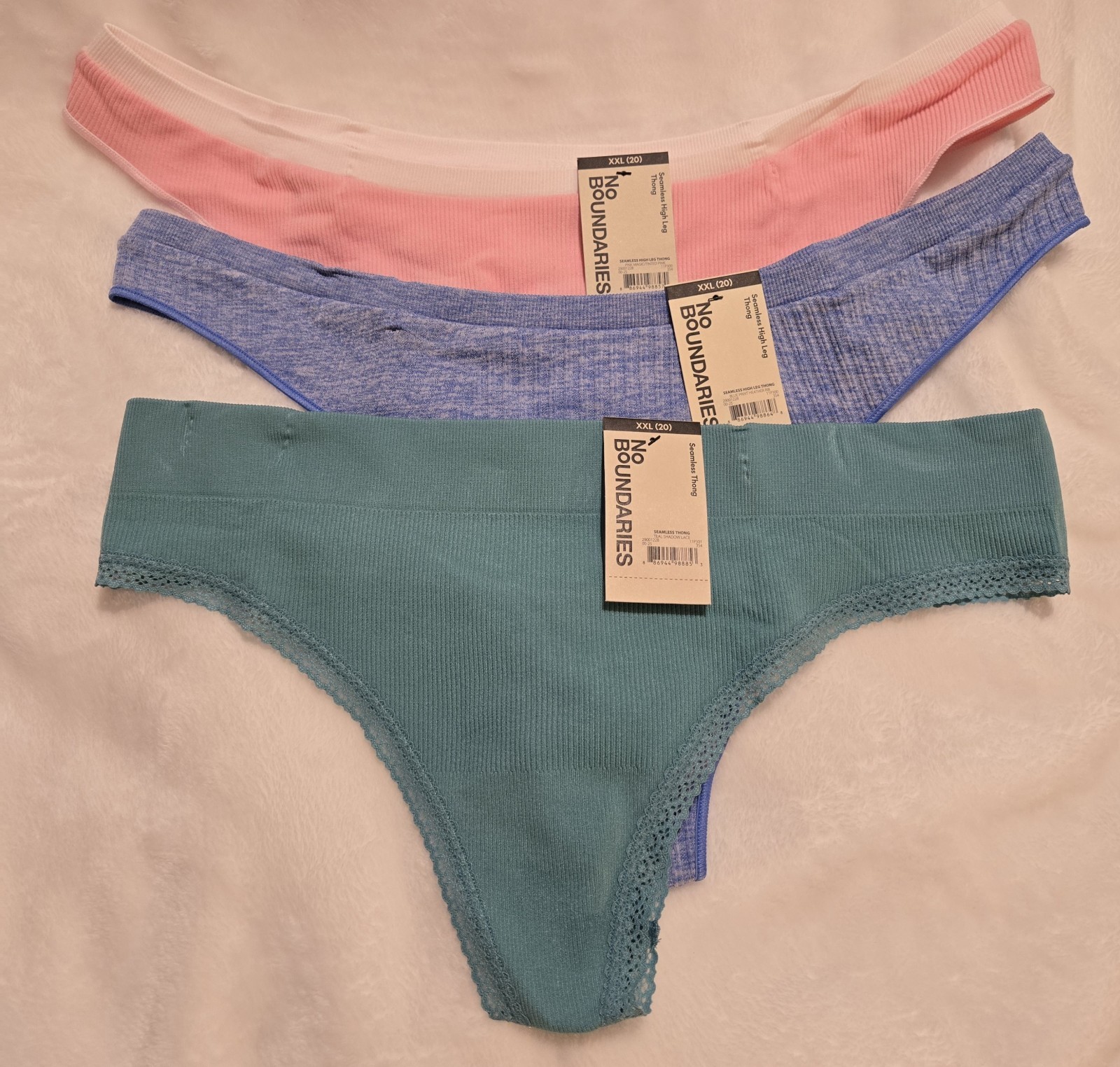 Women's No Boundaries NWT Seamless Thong Underwear 1 Pink, 1 Blue, 1 Teal XXL 20