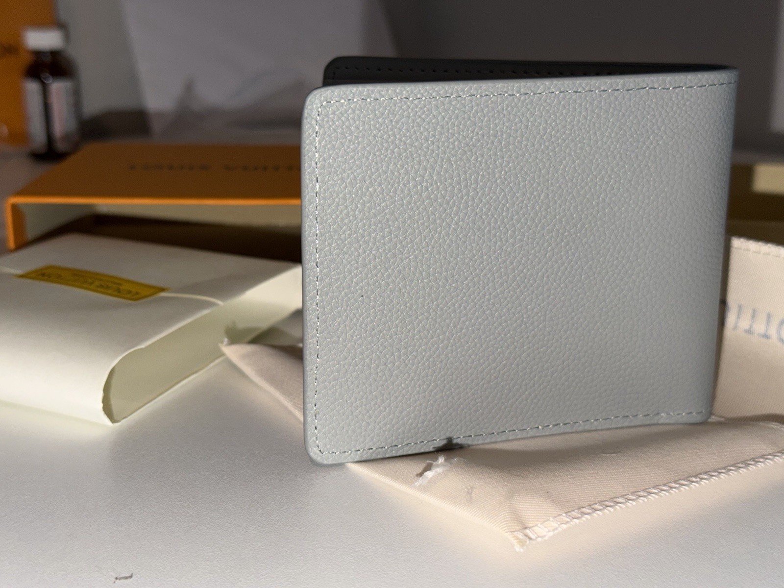 как выглядит Louis Vuitton LV Aerogramme Multiple Wallet in grey cowhide leather фото