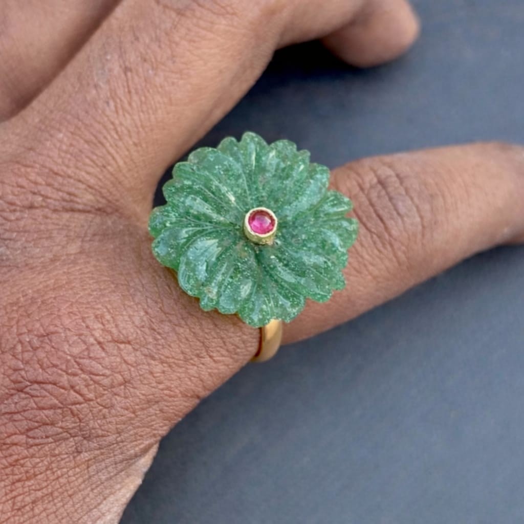 Green Aventurine ring : 925 sterling silver gold plated jewelry , Ruby Stone