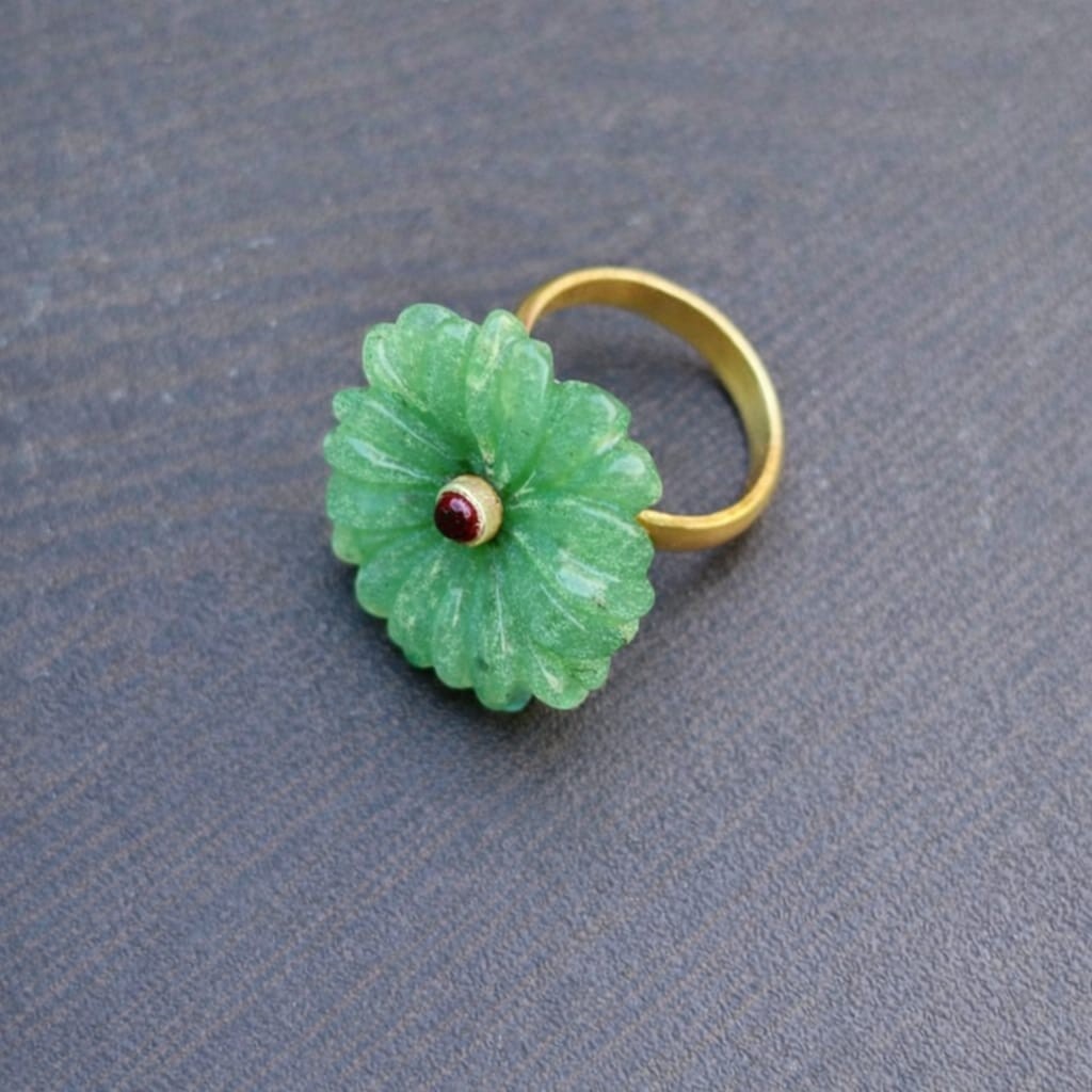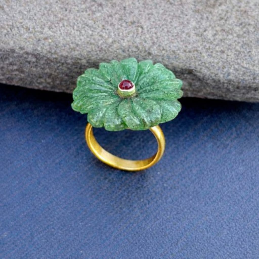 как выглядит Green Aventurine ring : 925 sterling silver gold plated jewelry , Ruby Stone фото