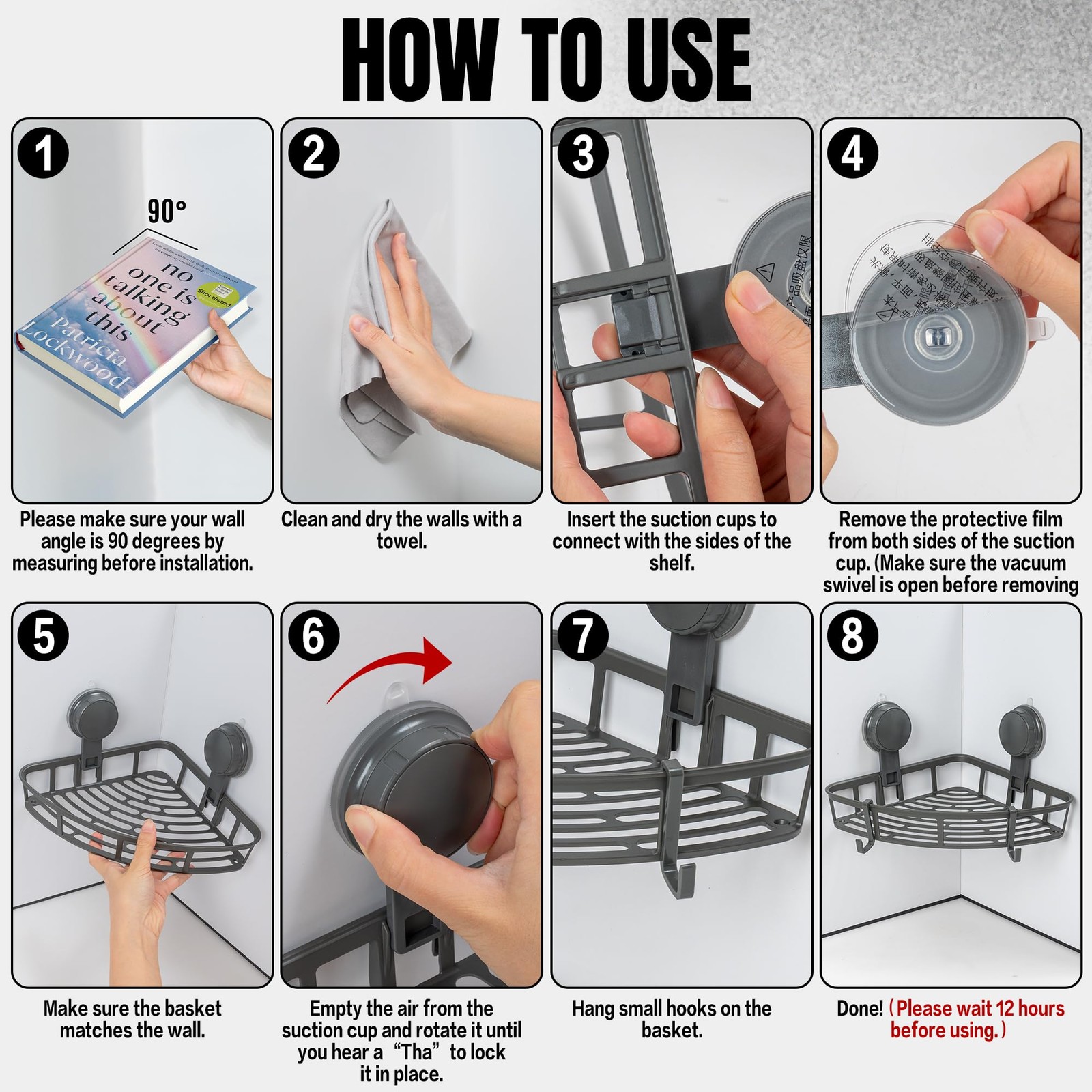 Corner Shower Caddy Shelves - 2PCS Suction Cup Shower Organizer Shelf with 4 ...