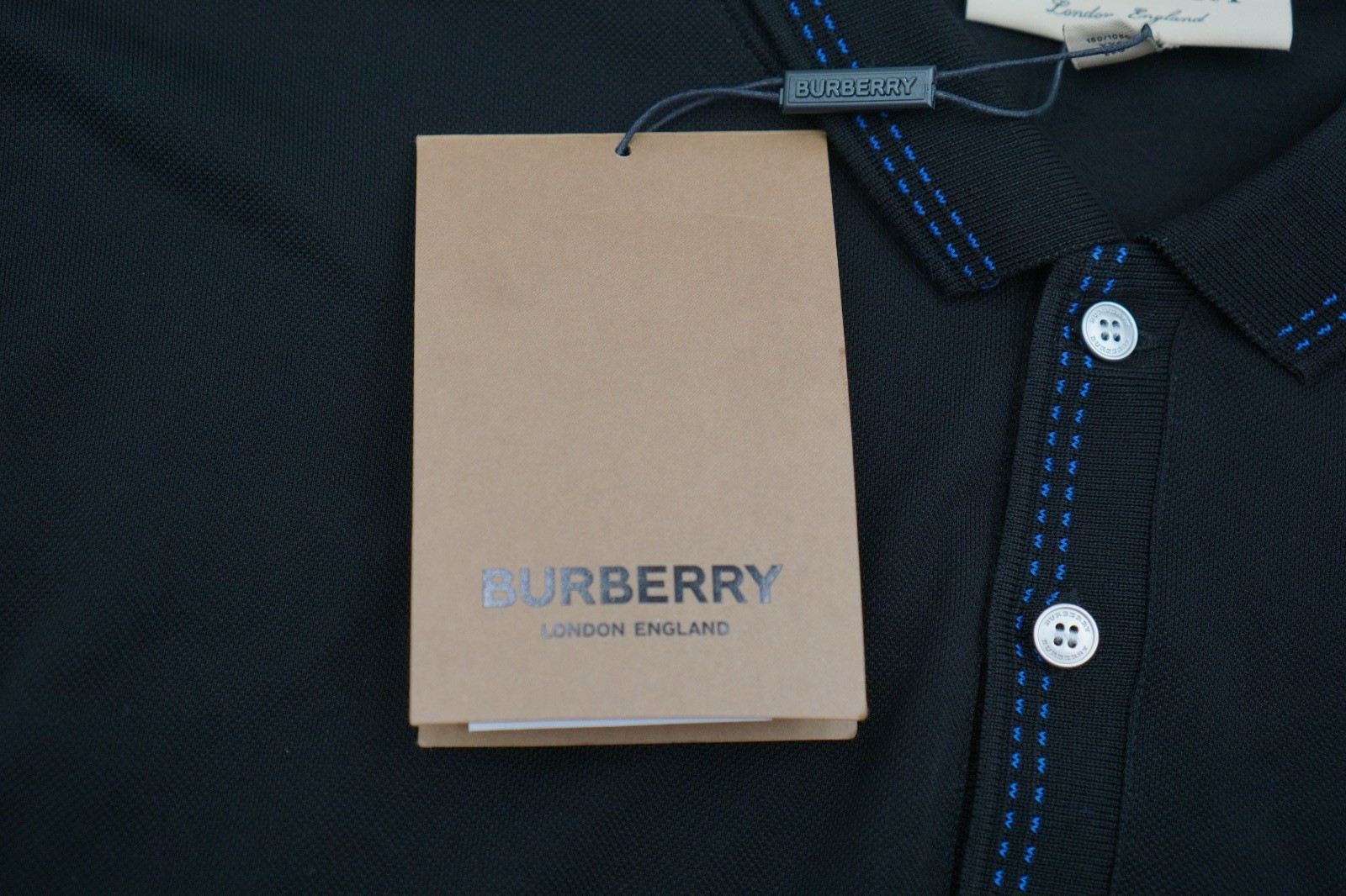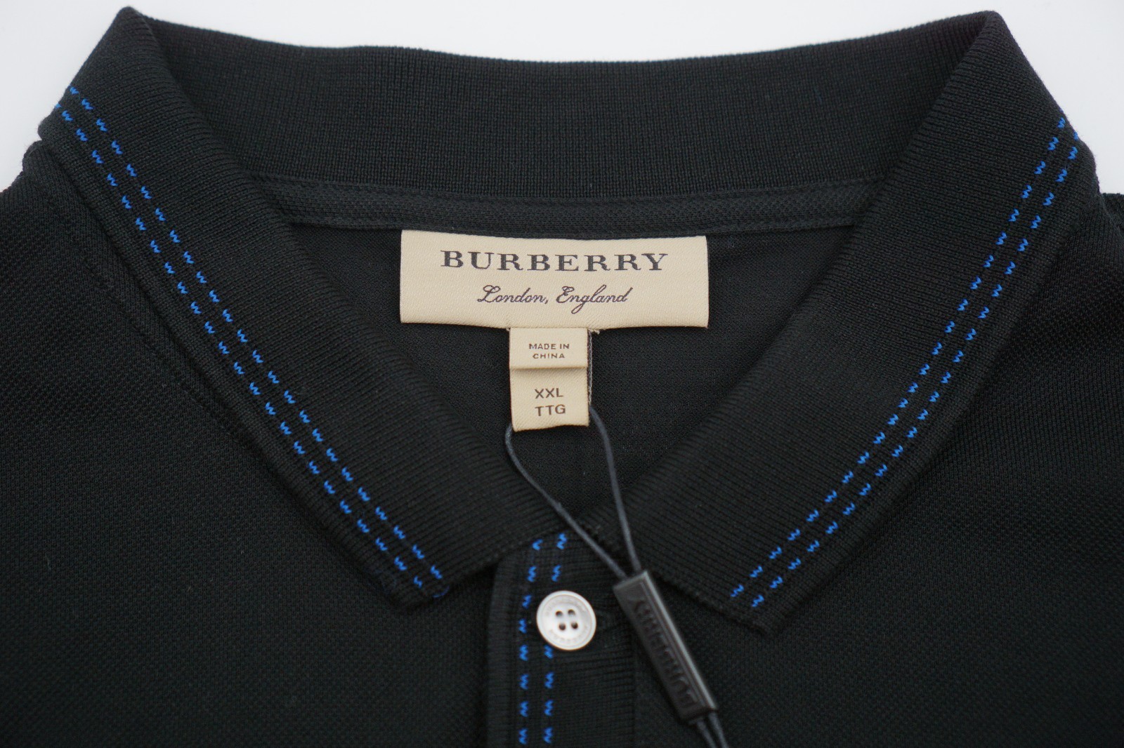 как выглядит Men Burberry Polo Shirt Casual Pullover Kenfort Black Size 2XL XXL US46 фото