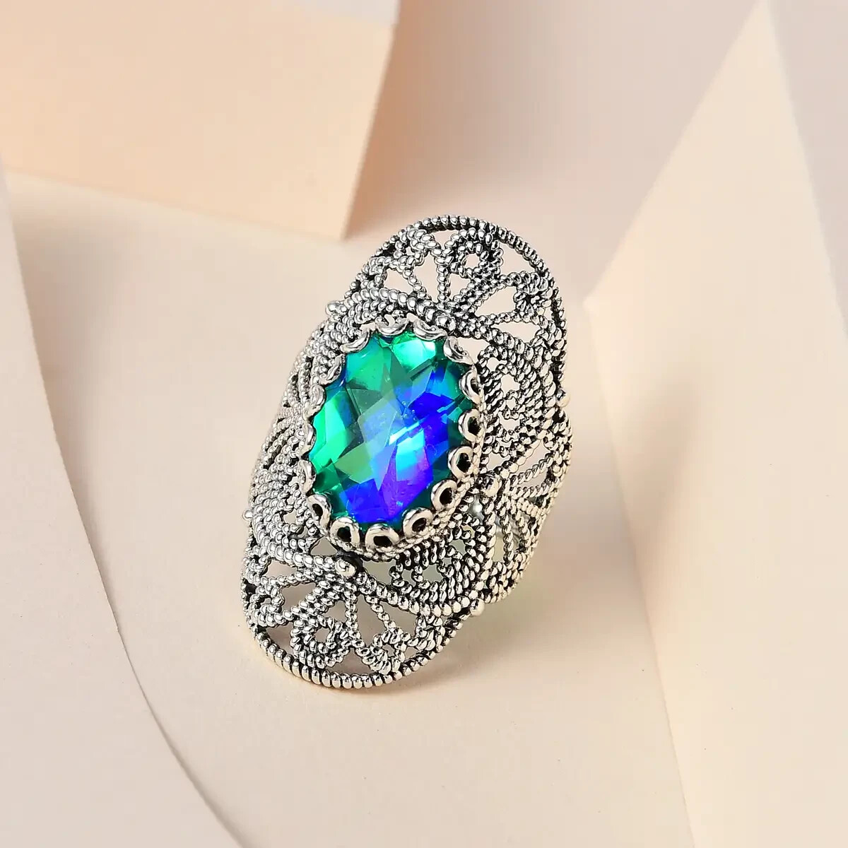 как выглядит Artisan Crafted Peacock Quartz Triplet Elongated Ring in Sterling 6.35 ct фото