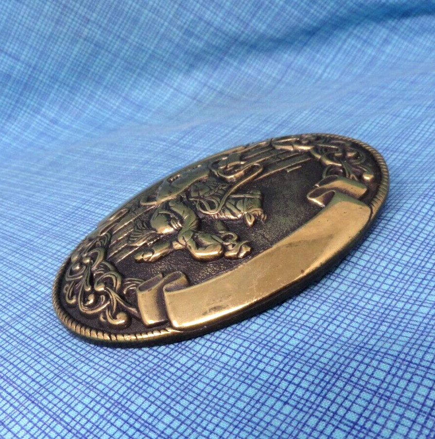 Calf Roping Rodeo Cowboy Belt Buckle Western Trophy Ribbons Vtg 80s .QRT129