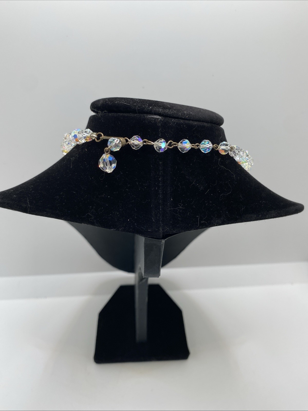 Vintage Aurora Borealis Crystal Faceted Graduated Iridescent Choker Necklace 16