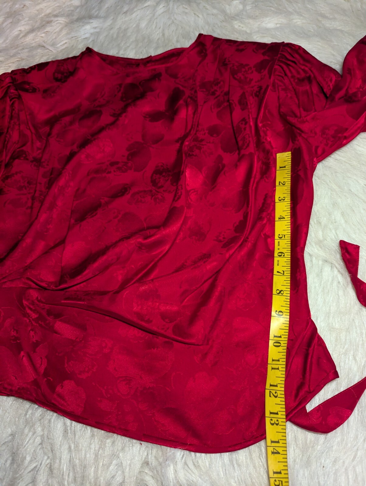 как выглядит ARGENTI 100 Silk BUTTERFLY Red Suit Blouse Skirt Set 2pc Women
