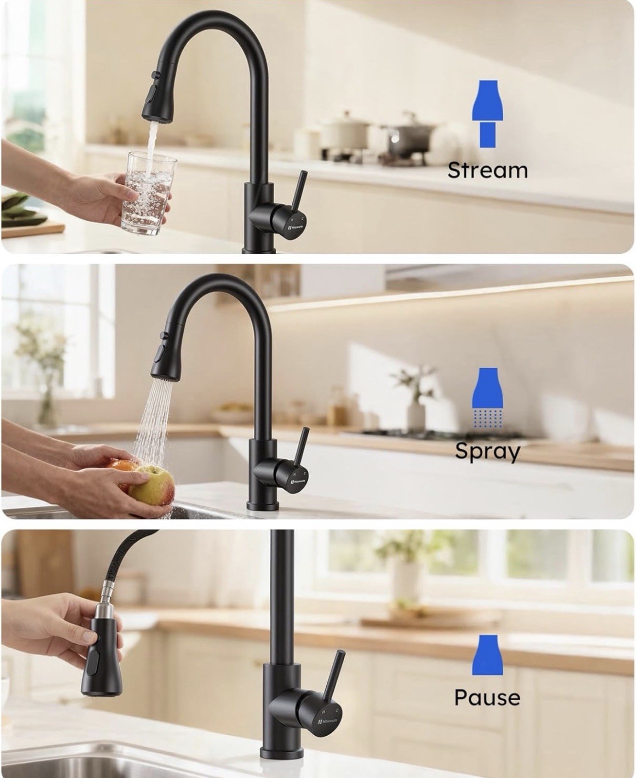 Kitchen Faucet with Pull Down Sprayer, Stainless Steel Kitchen Sink Faucet Black